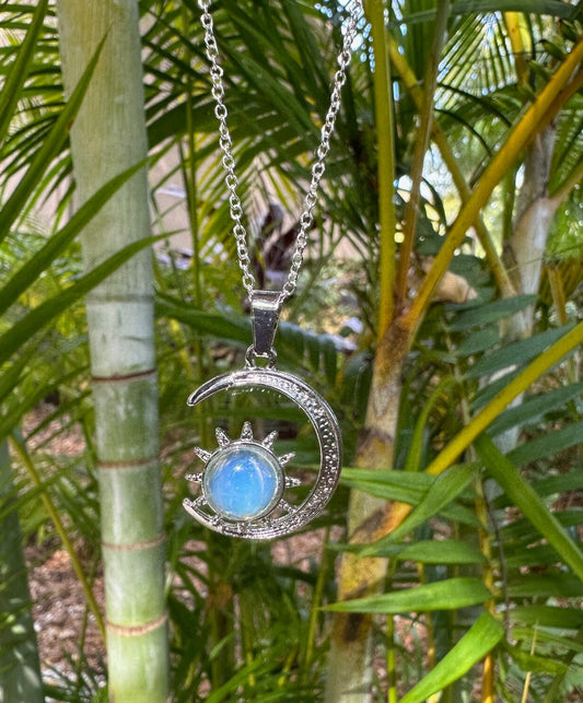 Opalite Crescent Sun Pendant Opalite Necklace Man Made Encased Crystal
