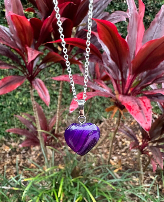 Purple Agate Heart Pendant Necklace