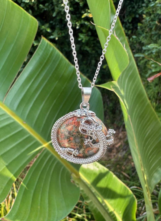 Orange Unakite Dragon Flat Pendant Necklace