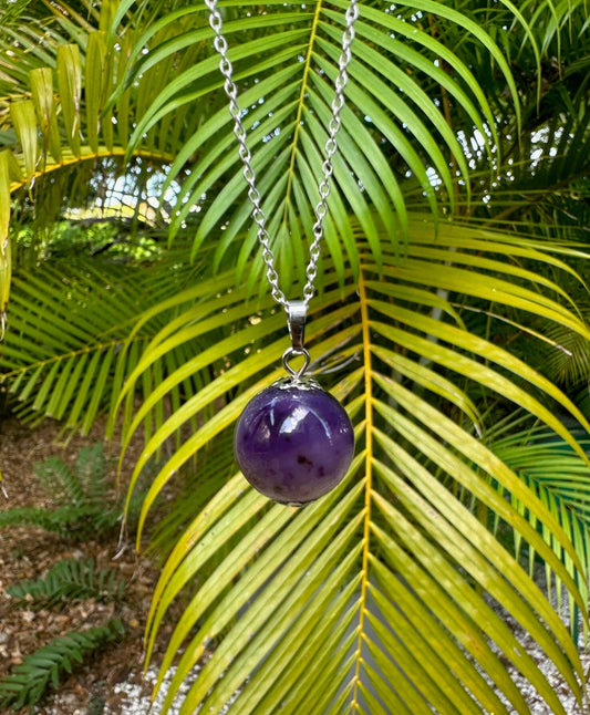 Purple Agate Ball Pendant Necklace