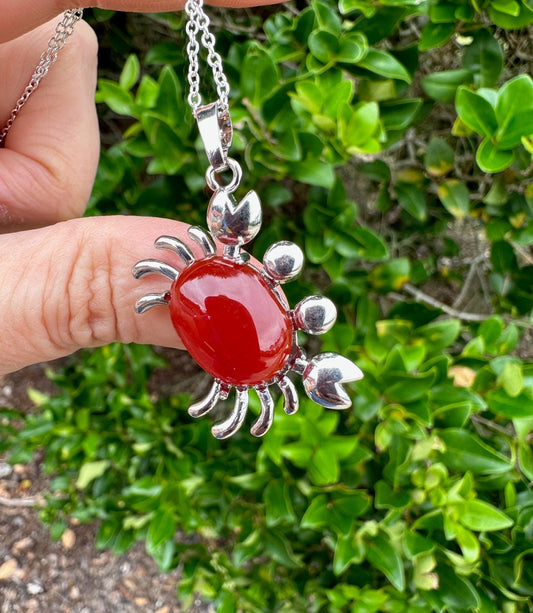 Red Agate Crab Pendant Necklace