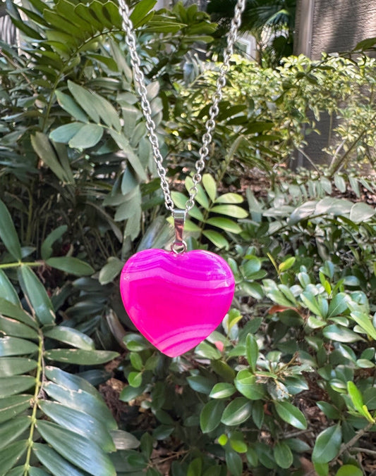 Pink Stripe Agate Heart Necklace
