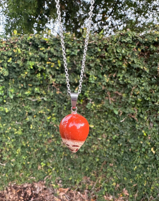 Red Agate Acorn Pendant Necklace