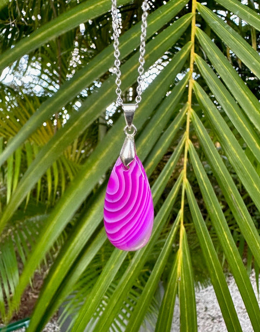 Pink Stripe Agate Teardrop Pendant Necklace