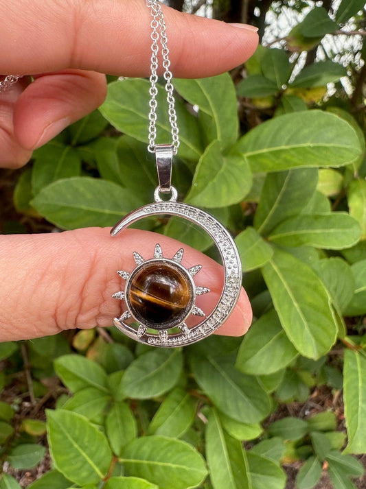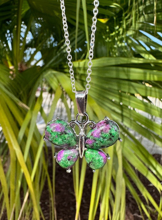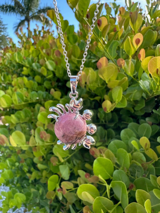 Ruby Zoisite Crescent Sun Pendant Necklace