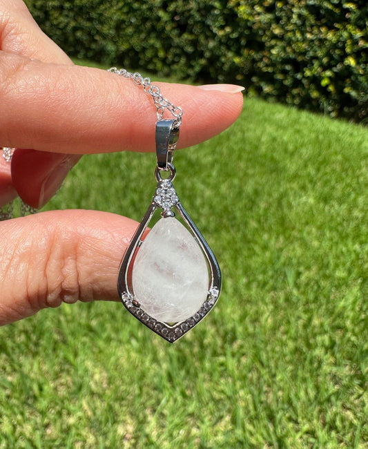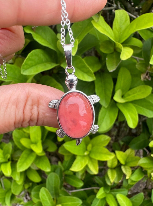 Cherry Quartz Thin Hexagon Pendant Necklace