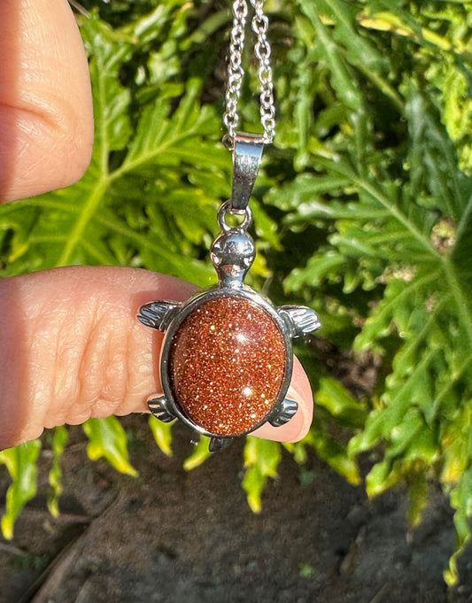 Goldstone Turtle Pendant Necklace