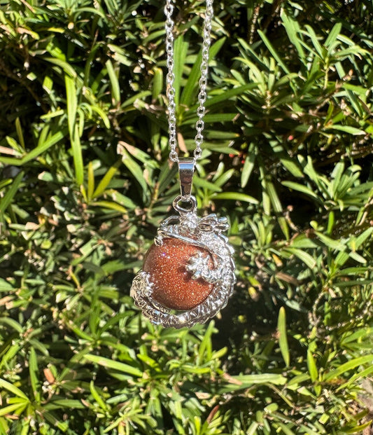 Goldstone Dragon Ball Pendant Necklace