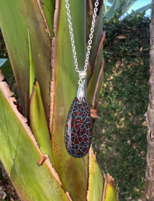 Dragon Vein Agate Teardrop Pendant Necklace