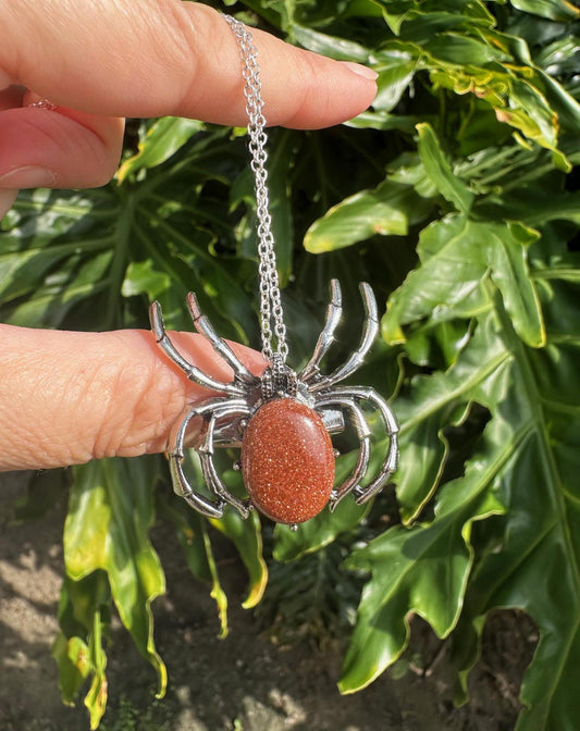 Goldstone Spider Brooch Necklace