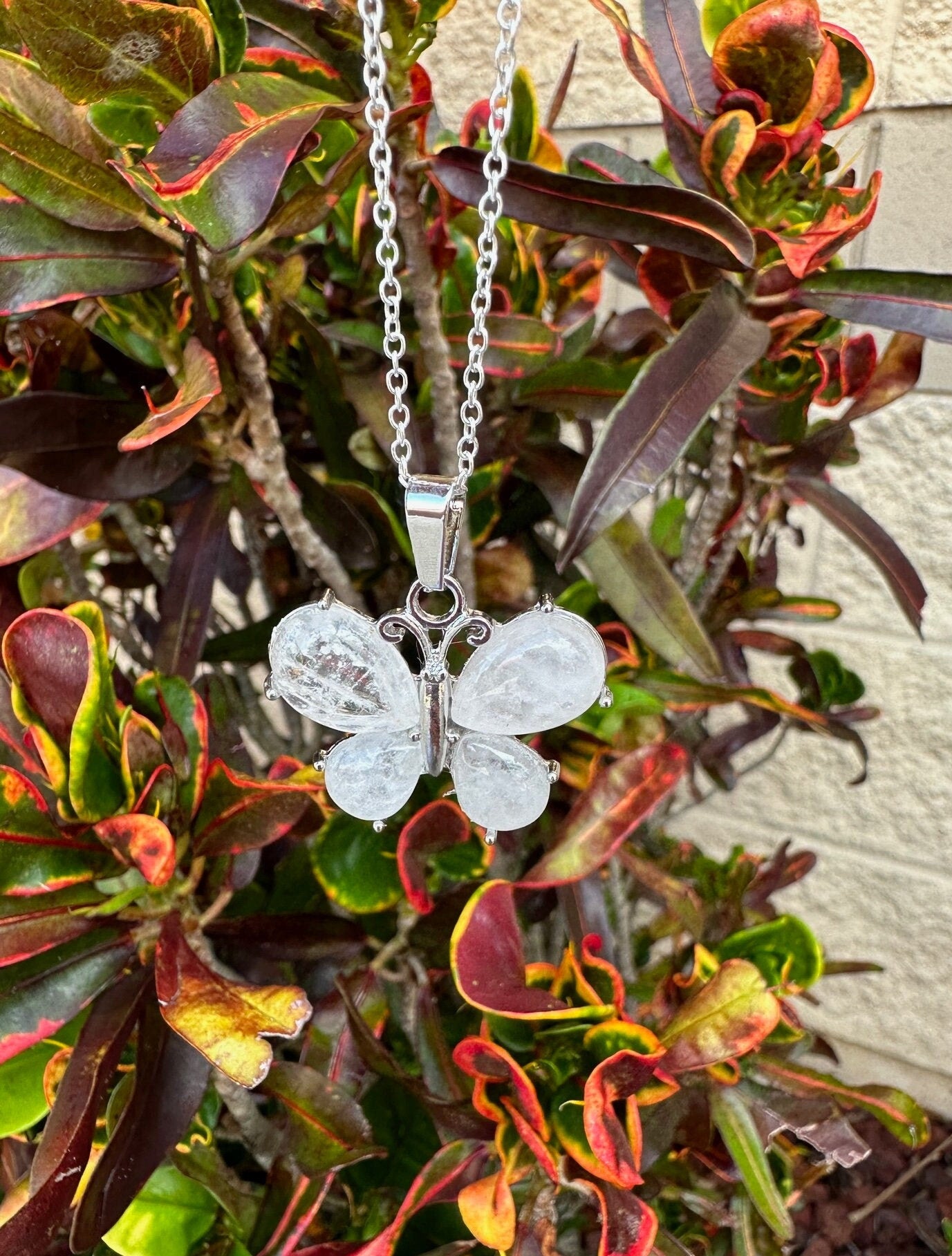 Clear Quartz Butterfly Pendant Necklace