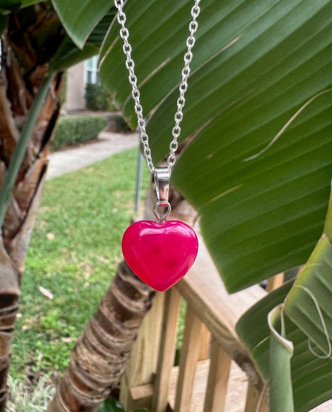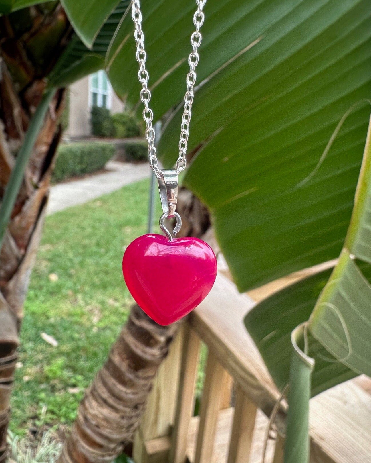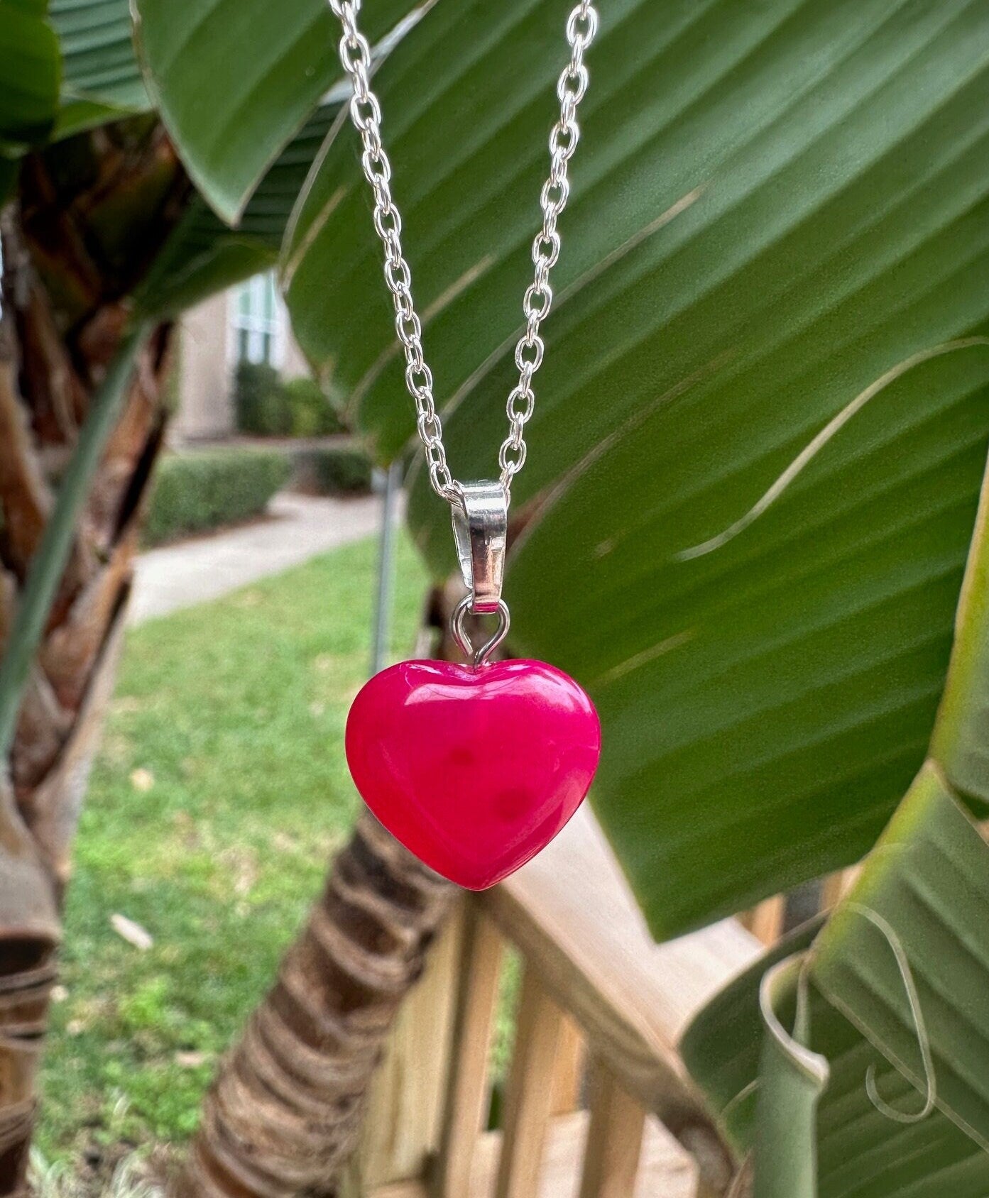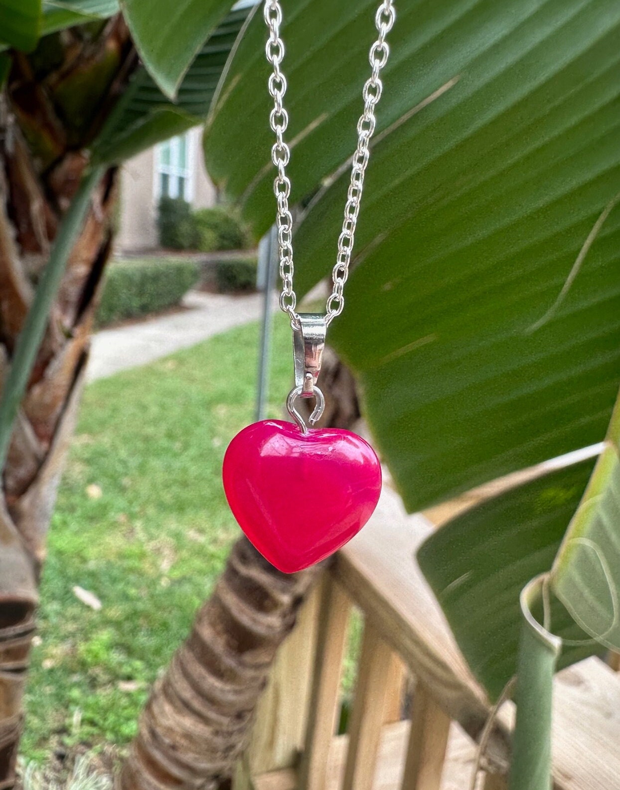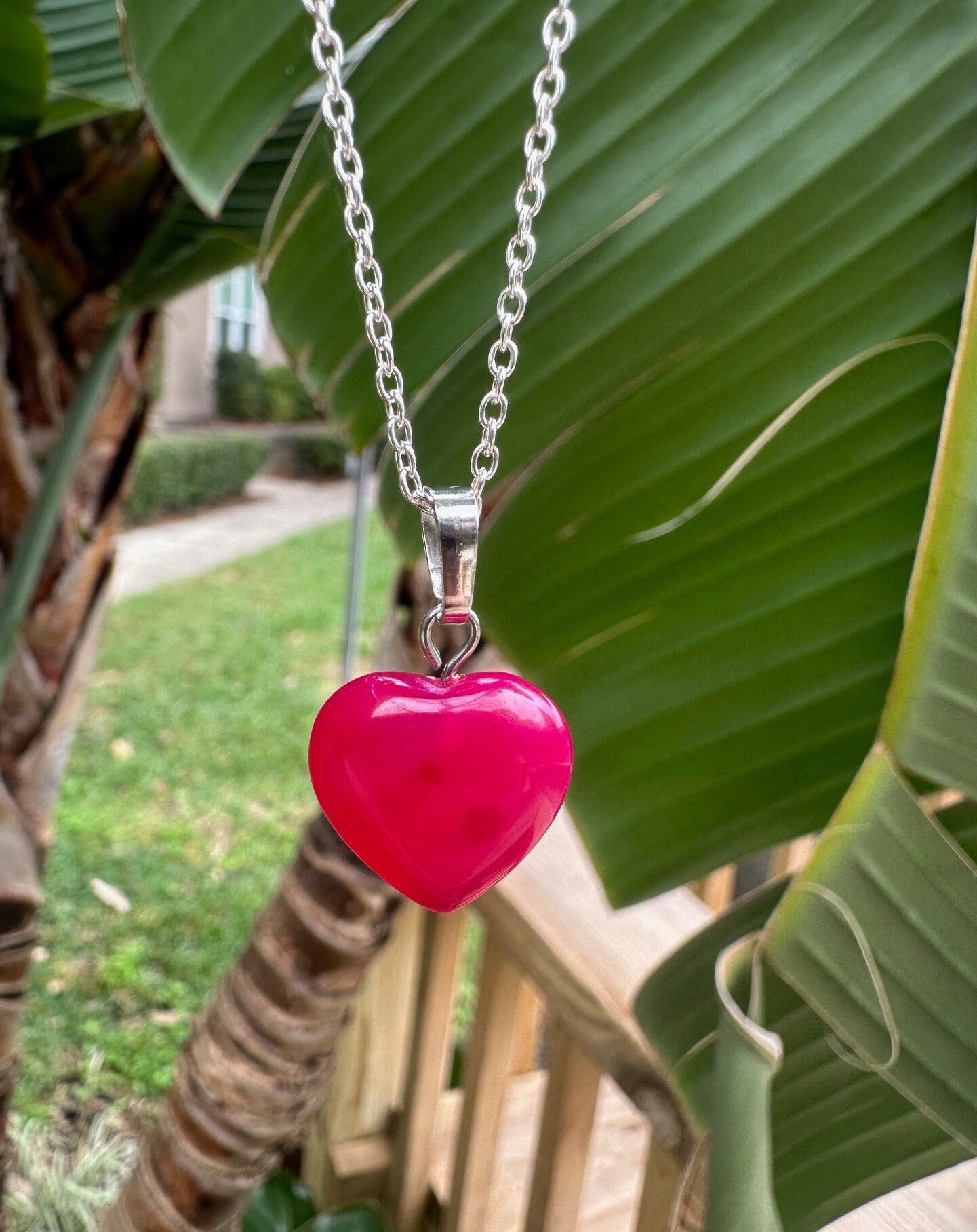 Dainty Pink Agate Heart Pendant Necklace