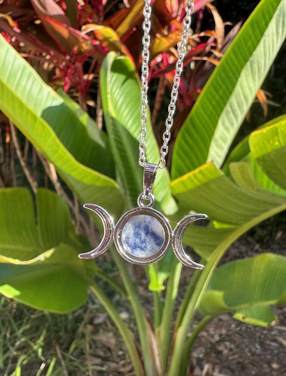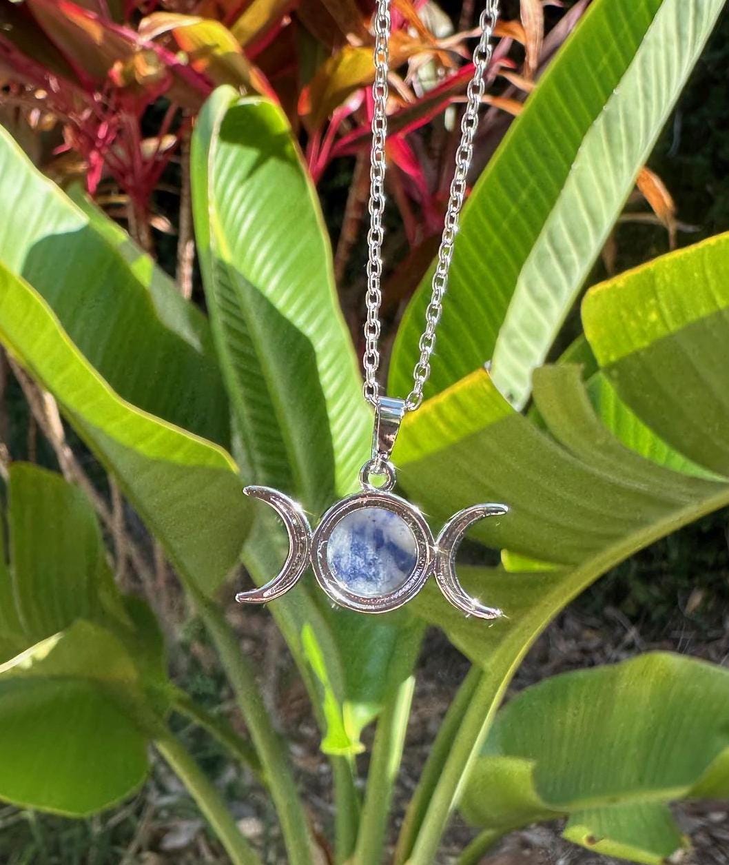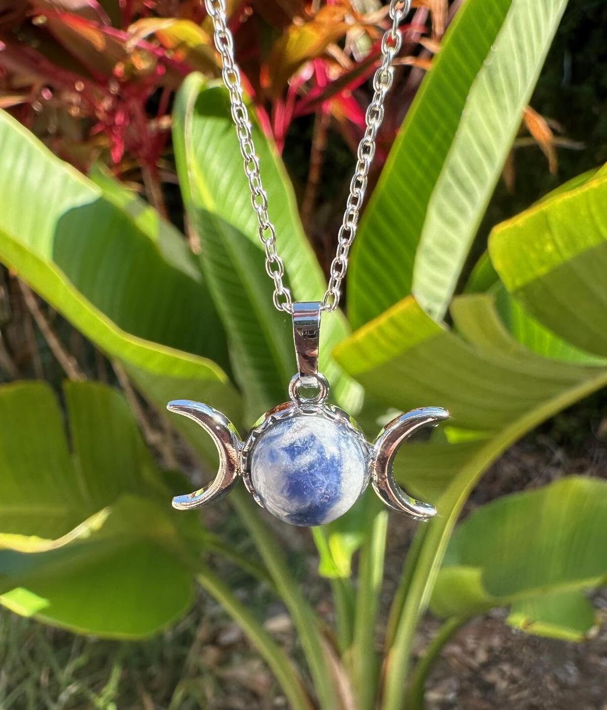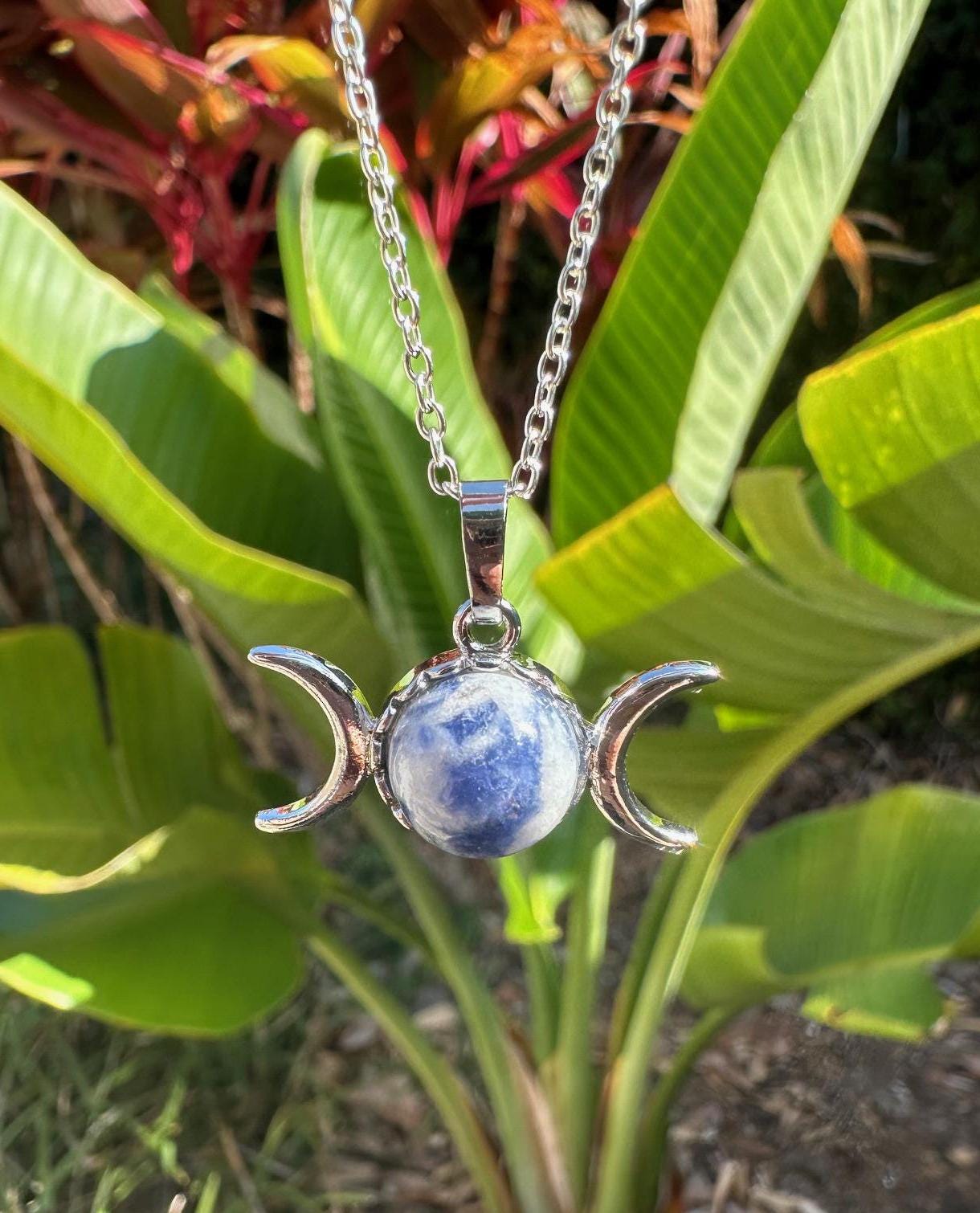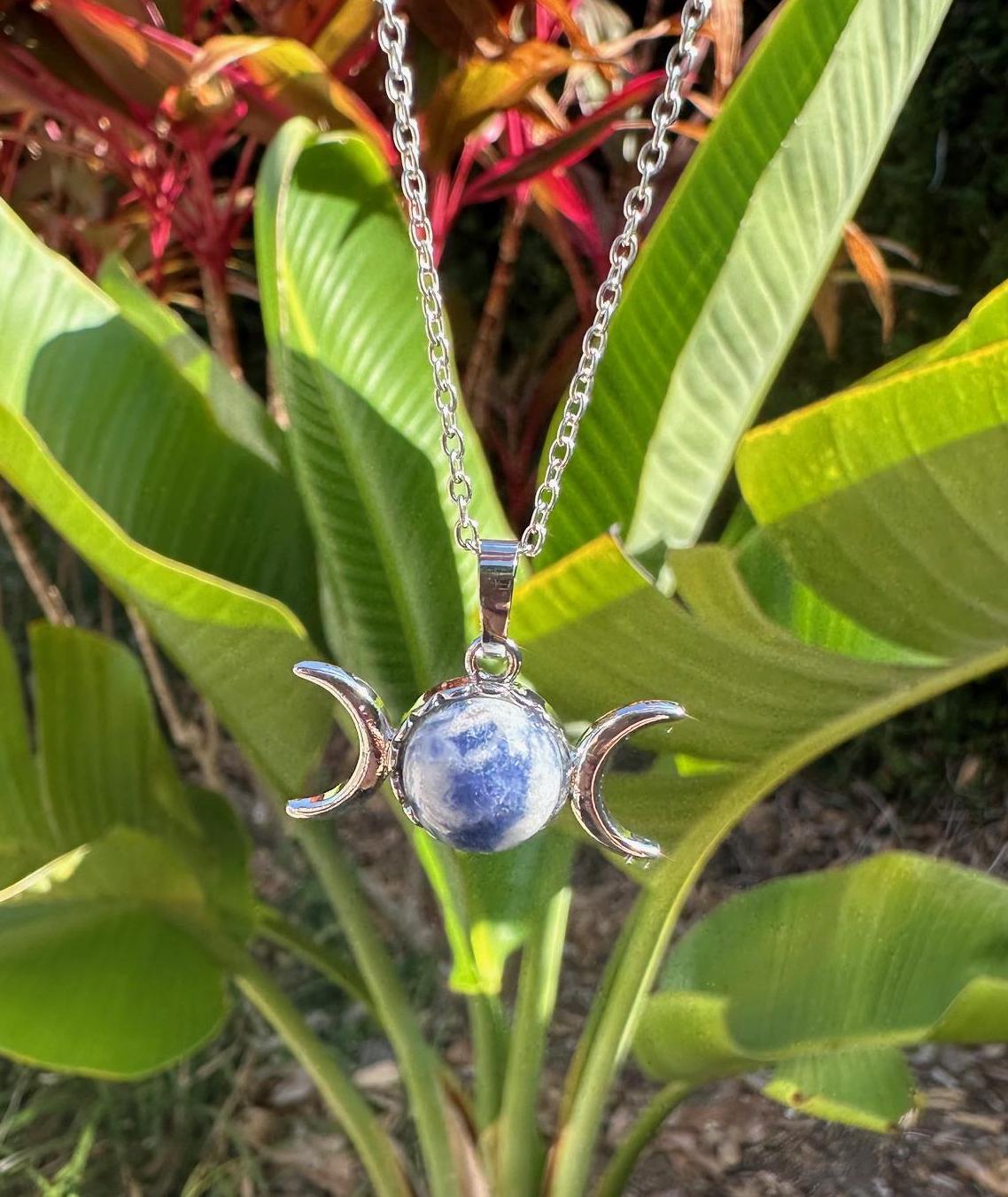 Dainty Sodalite Celestial 2 Moon Pendant Necklace