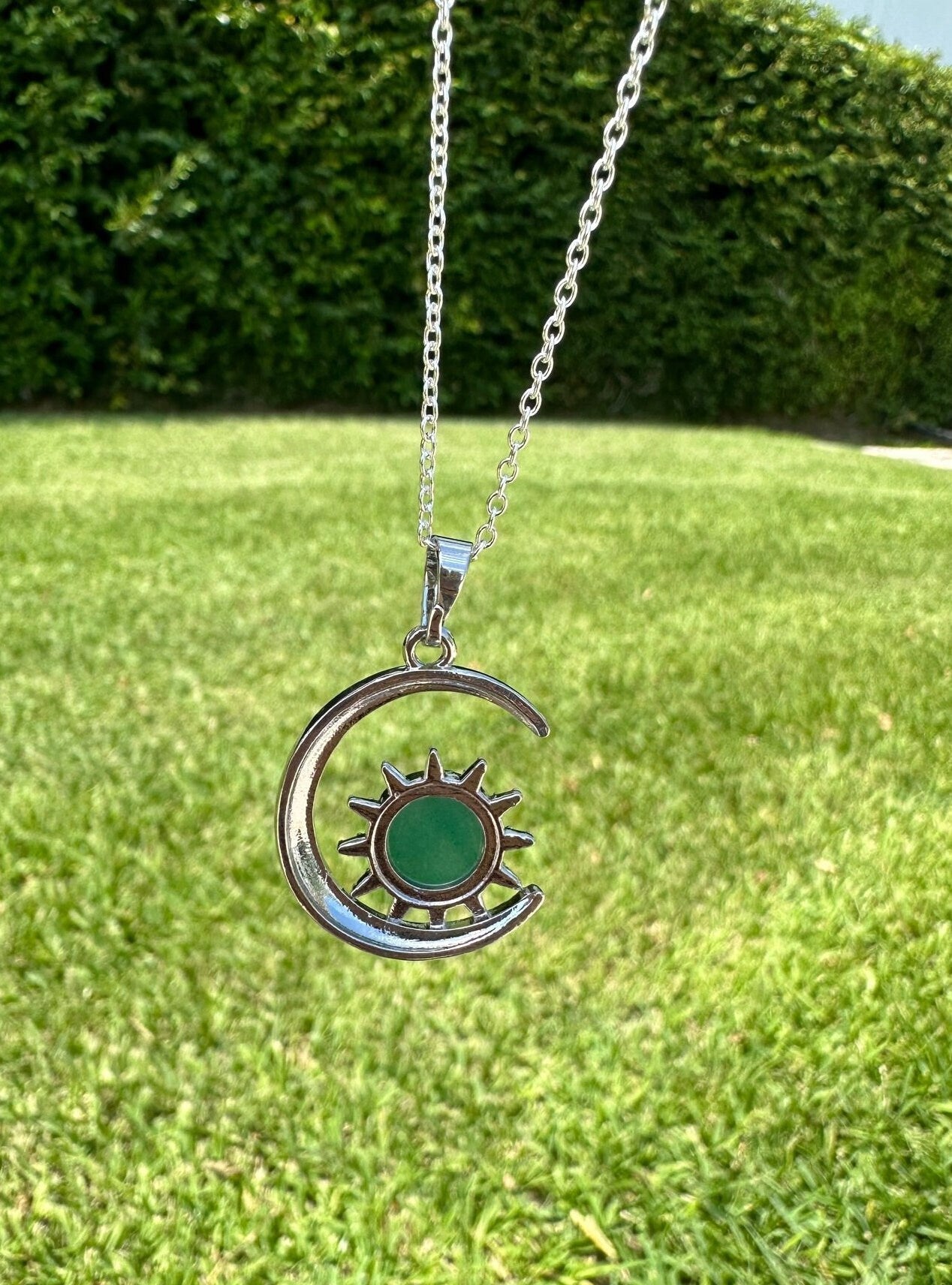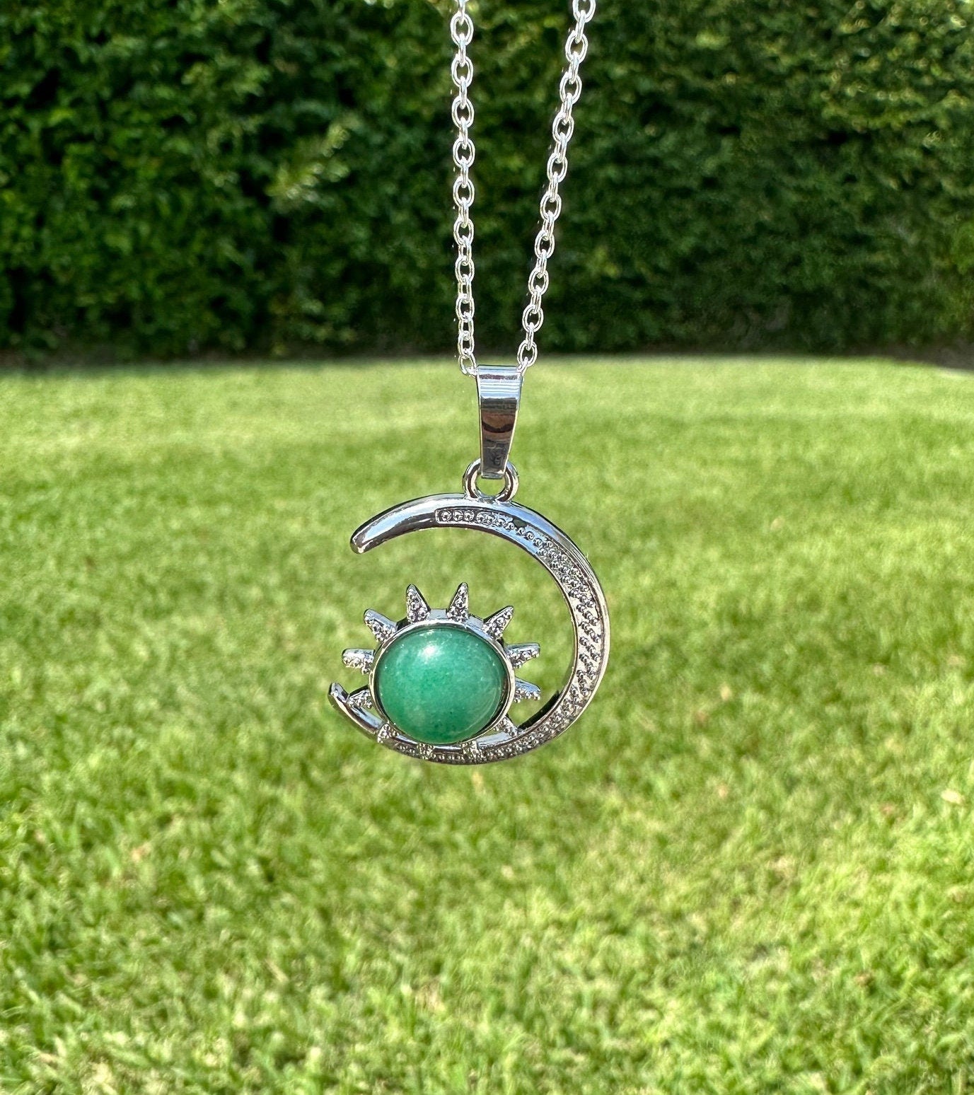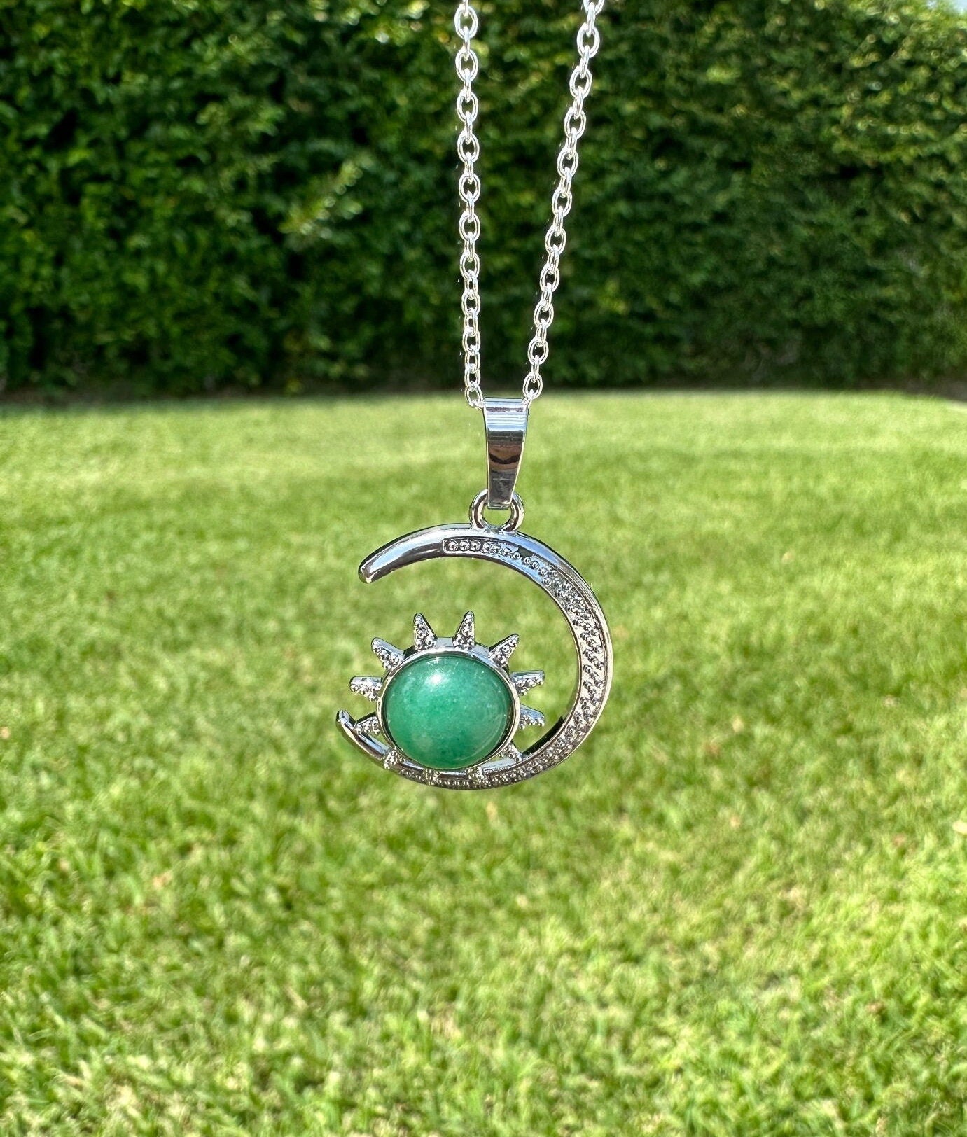 Green Aventurine Crescent Sun Pendant Necklace