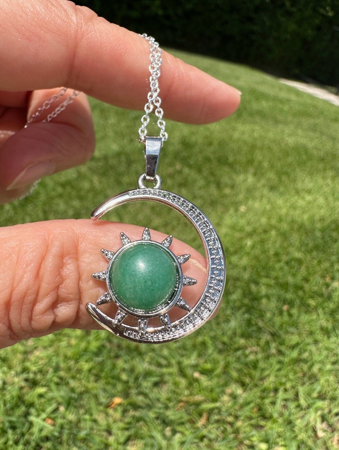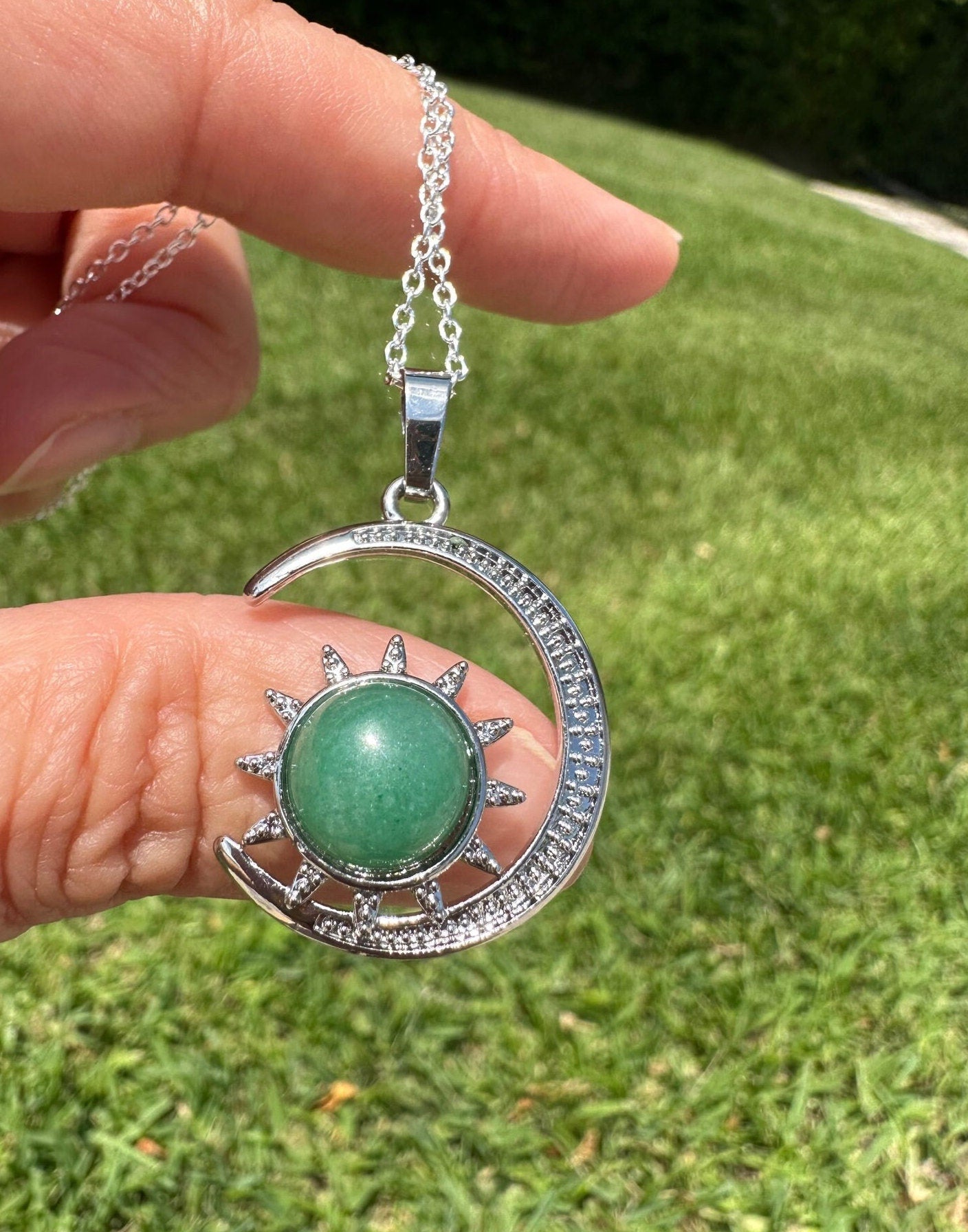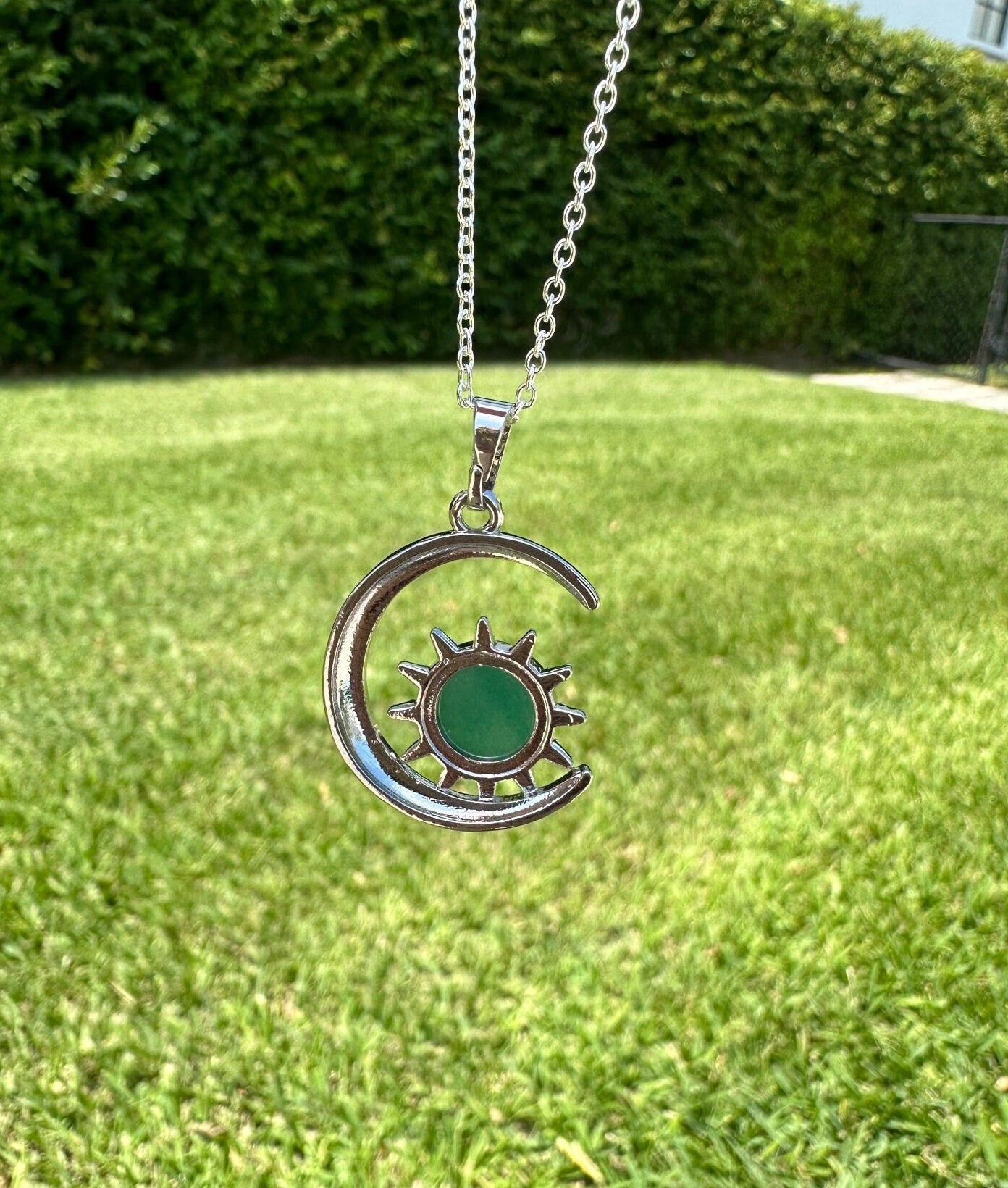 Green Aventurine Crescent Sun Pendant Necklace