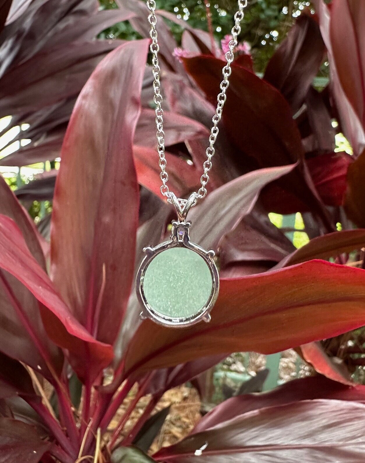 Metal pieces and chain are made of stainless steel. Chain is silver plated.