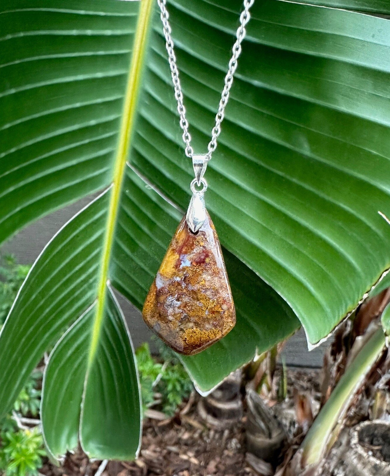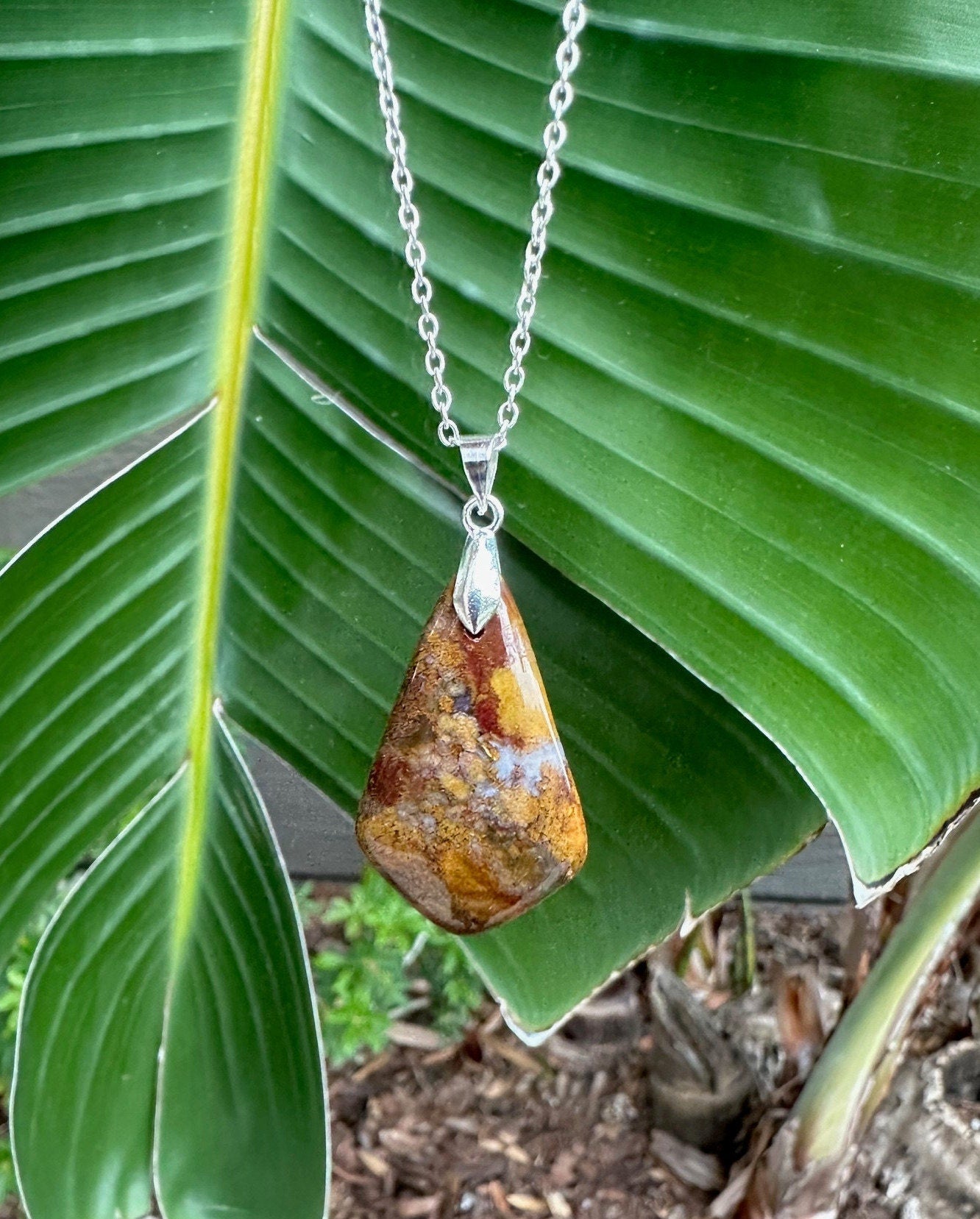 Metal pieces and chain are made of stainless steel. Chain is silver plated.
