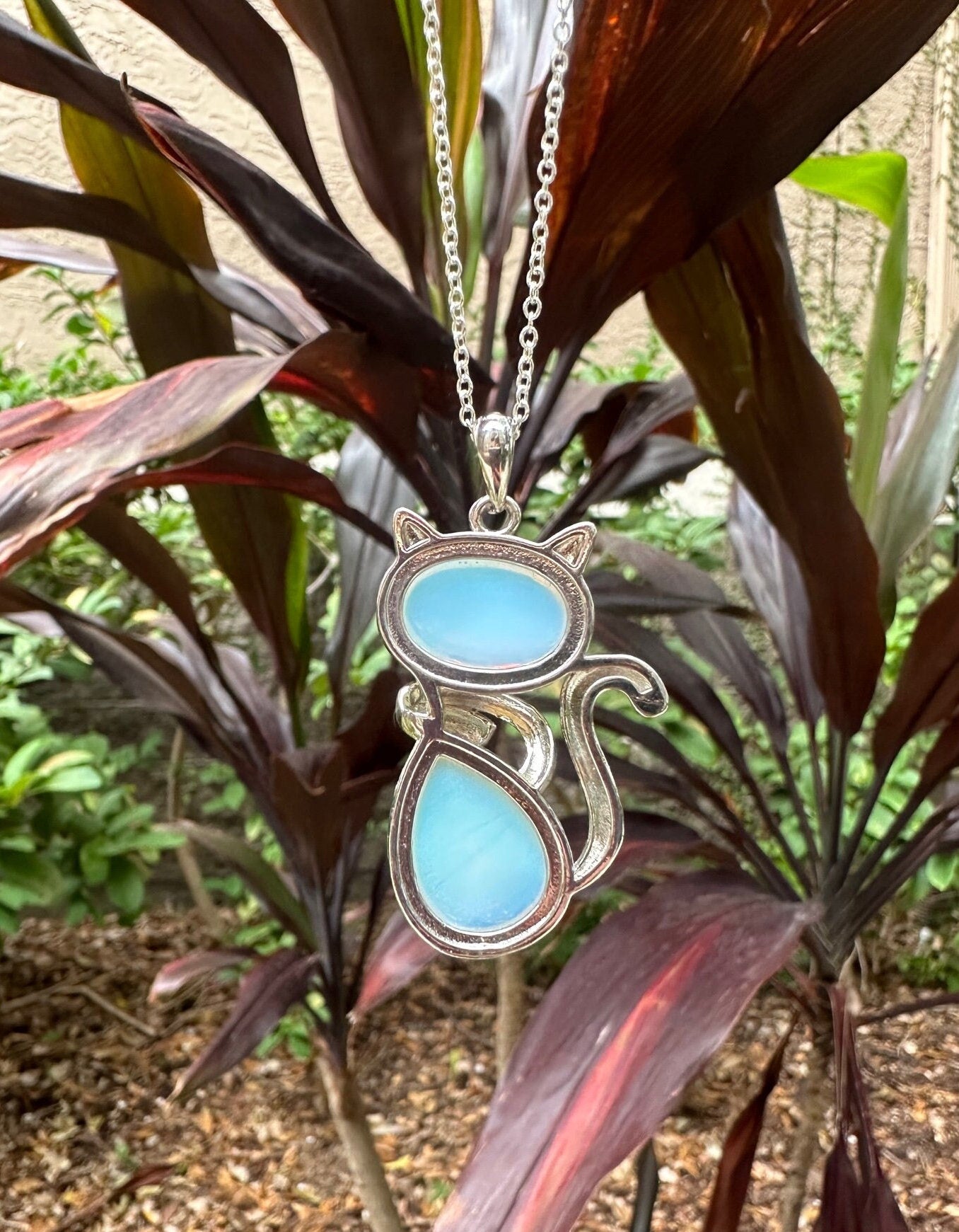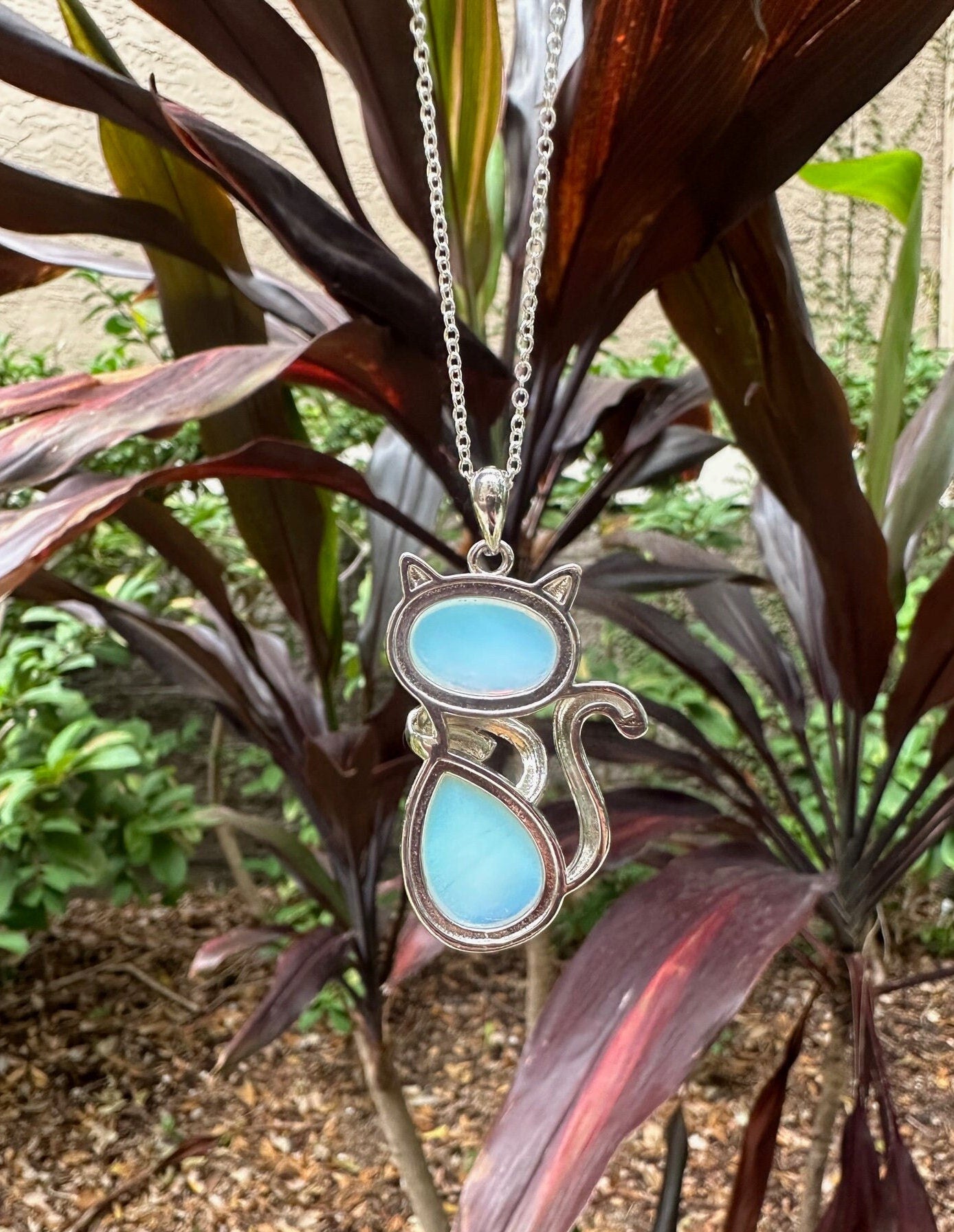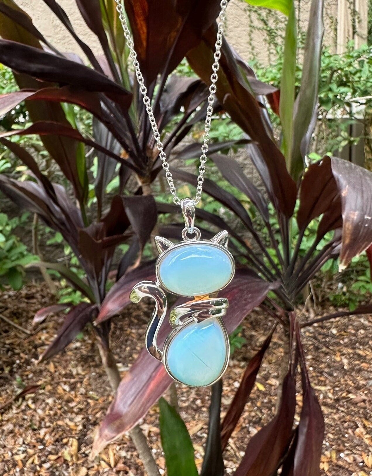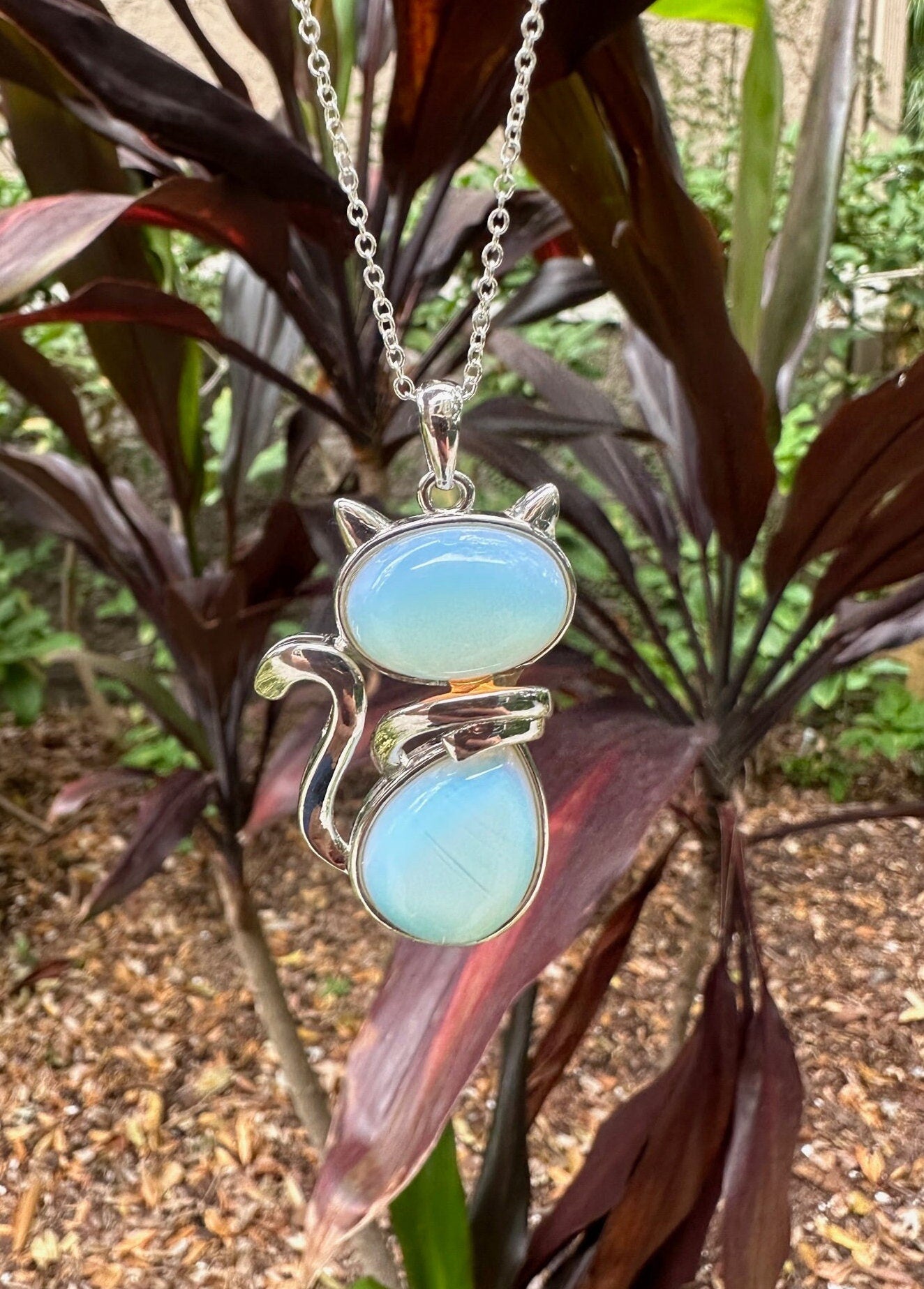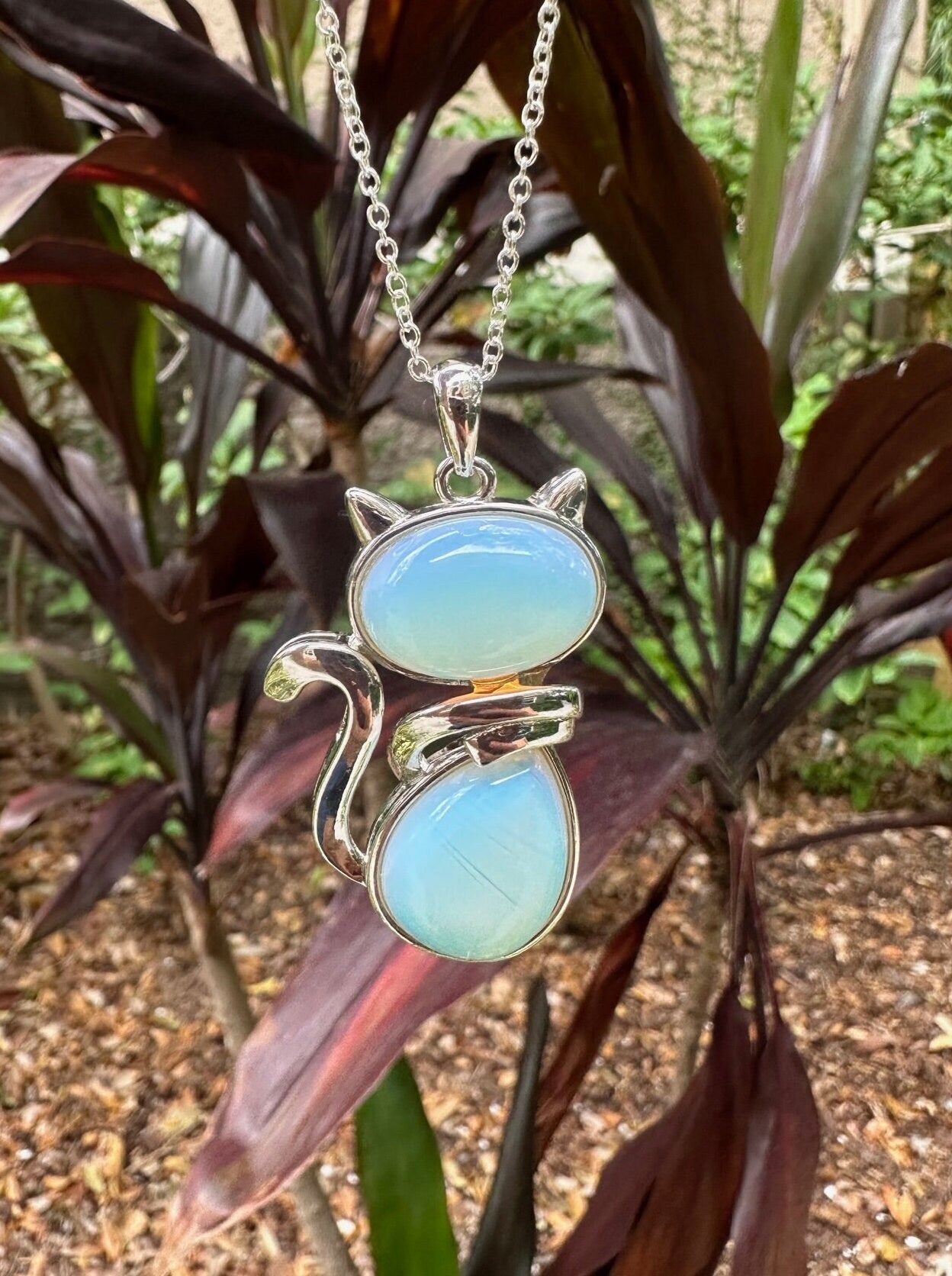 Large Opalite Cat Pendant Necklace