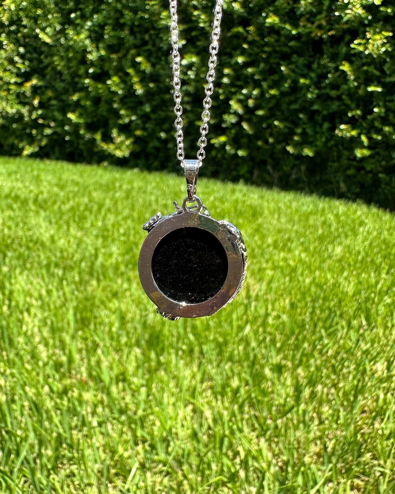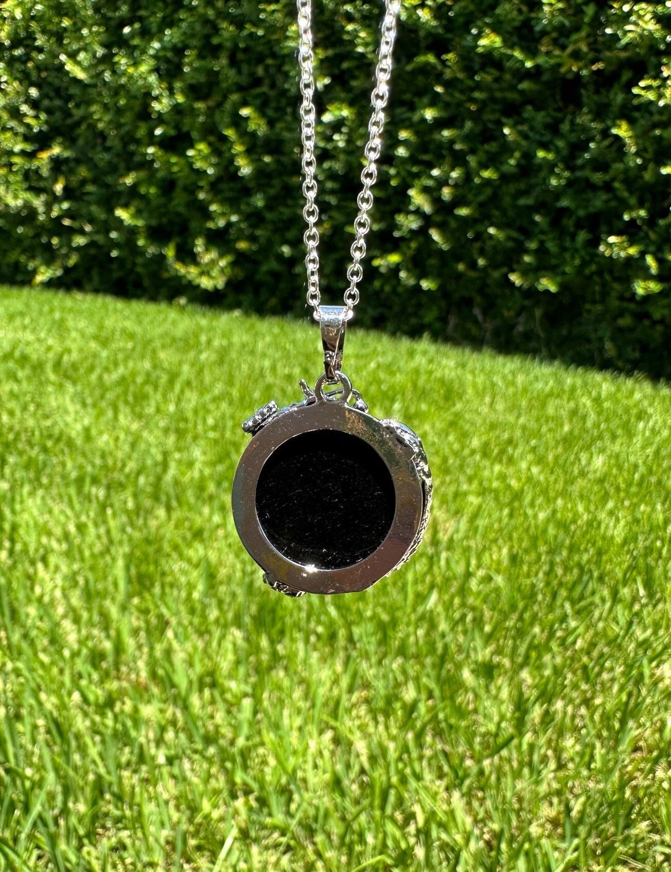 Metal pieces and chain are made of stainless steel. Chain is silver plated.