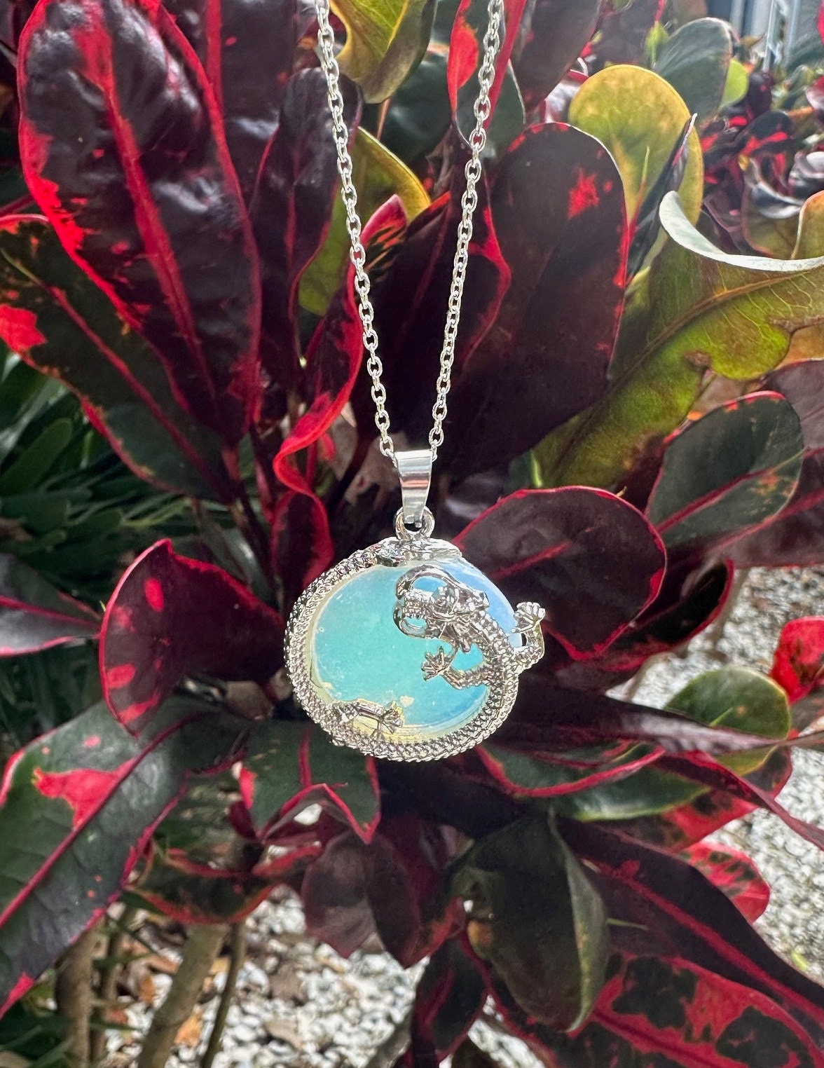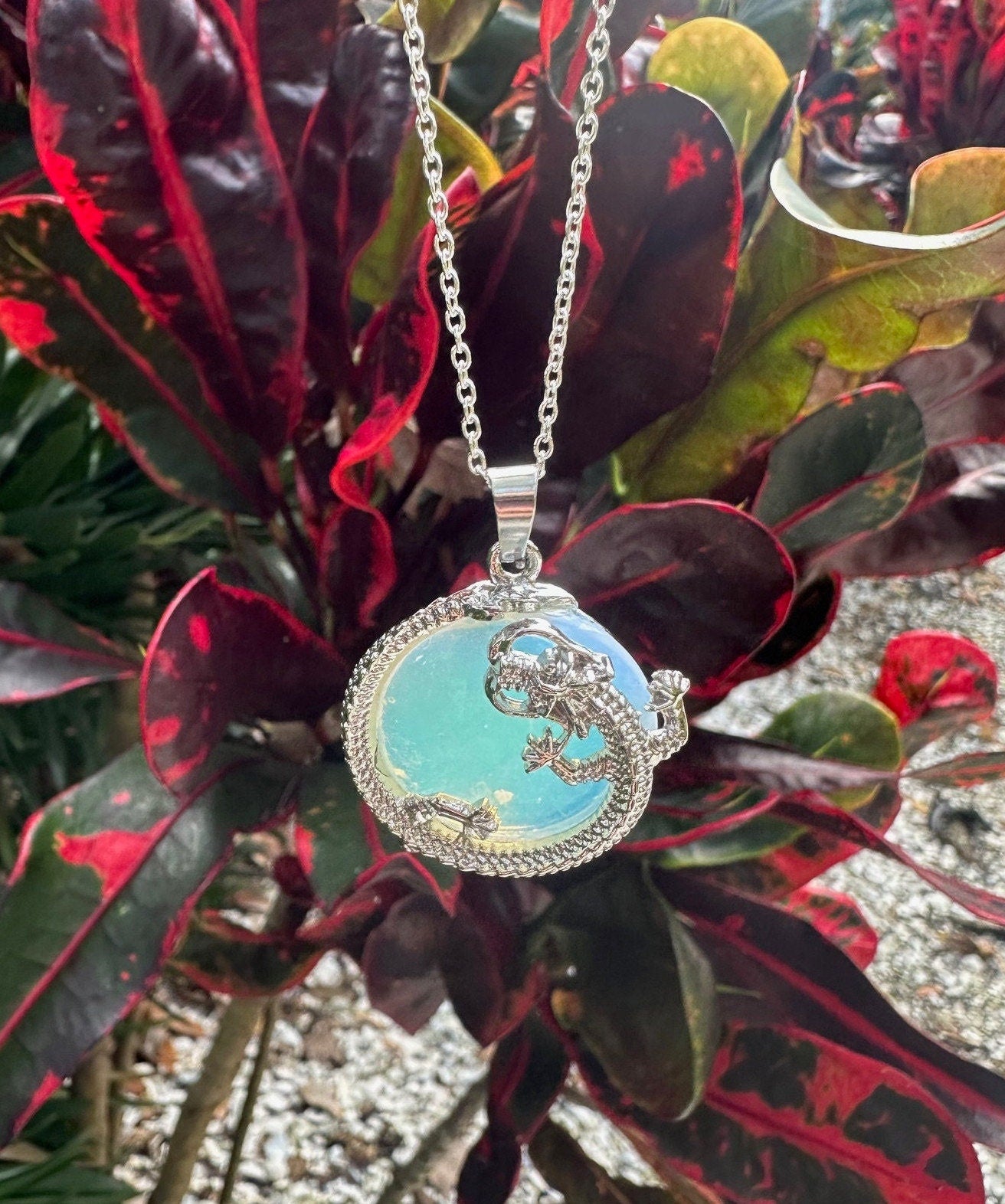 Opalite Dragon Flat Pendant Necklace