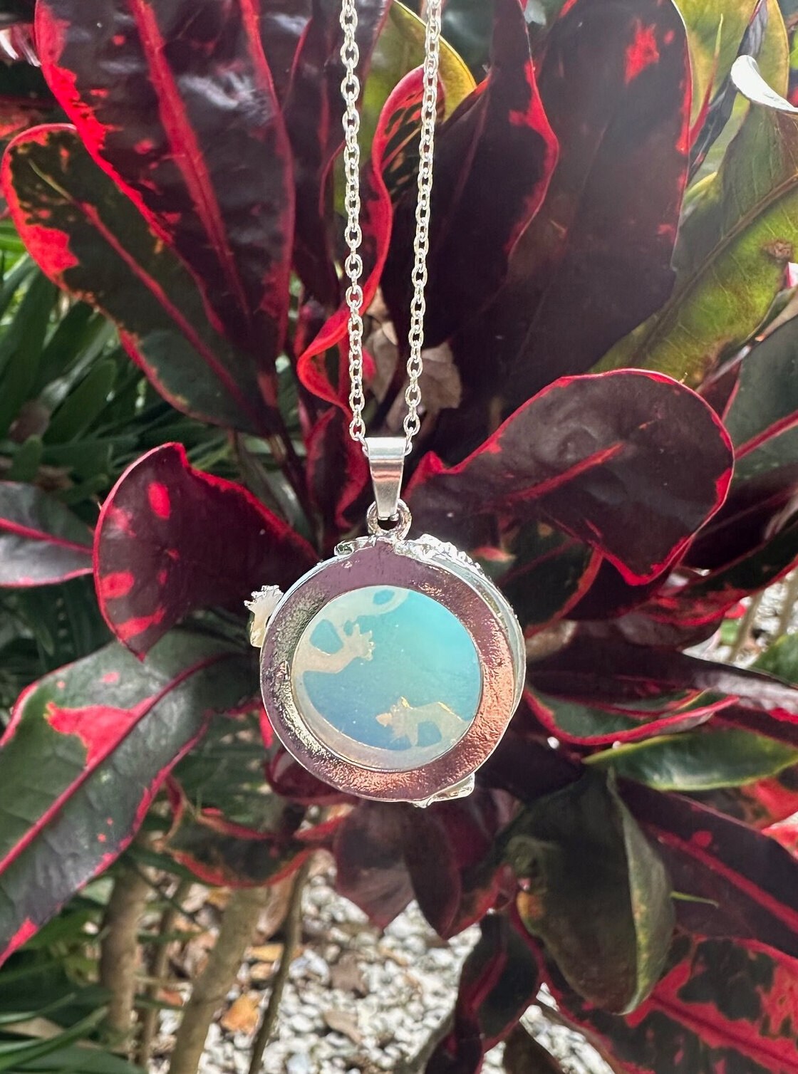 Metal pieces and chain are made of stainless steel. Chain is silver plated.