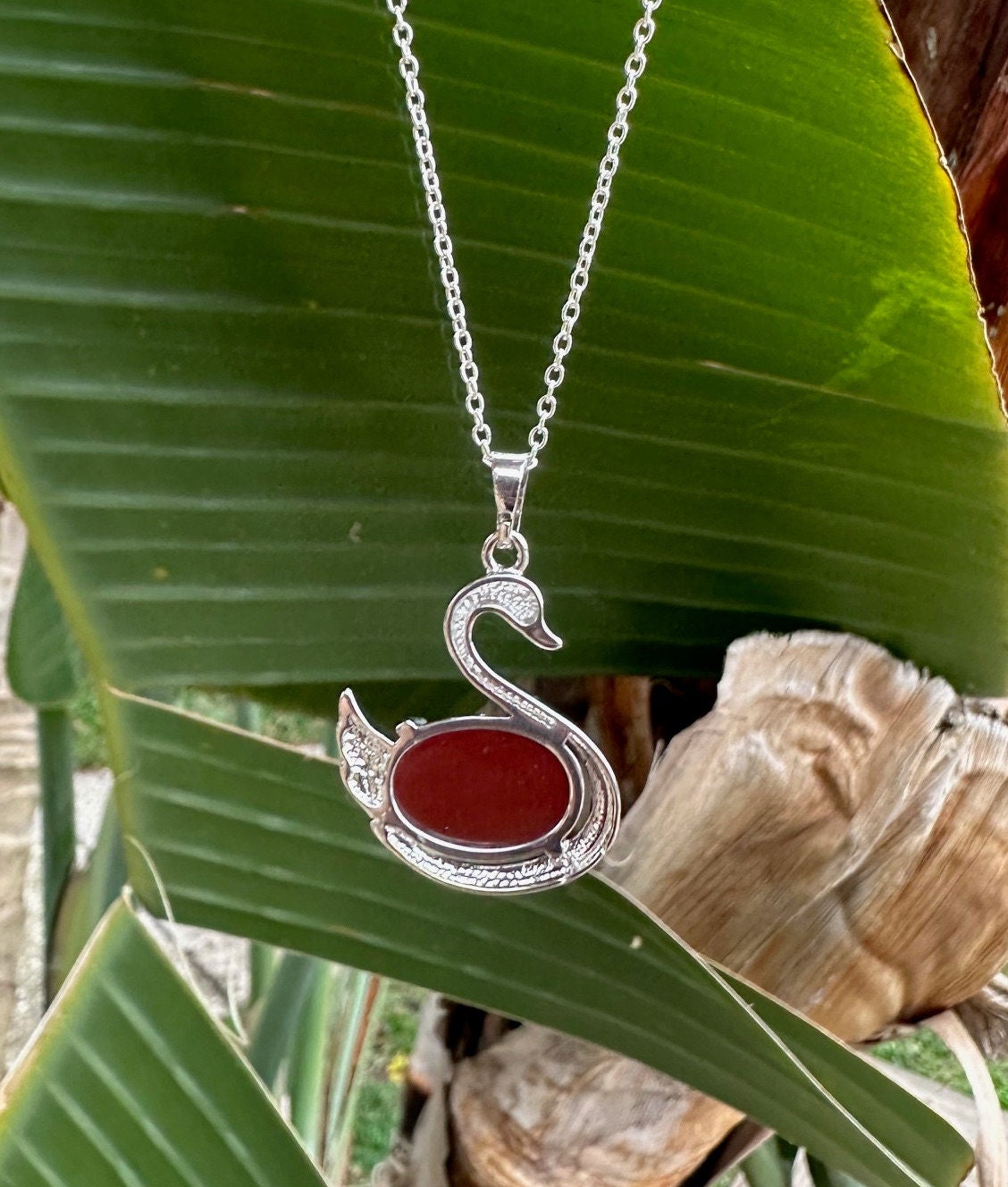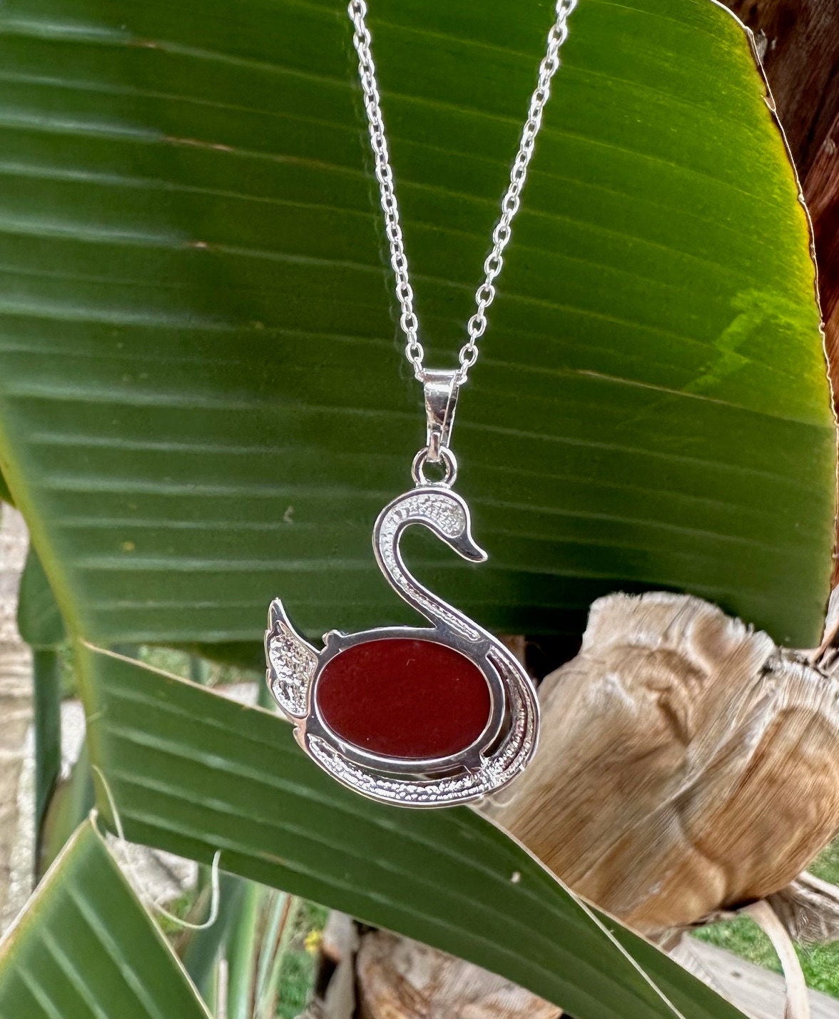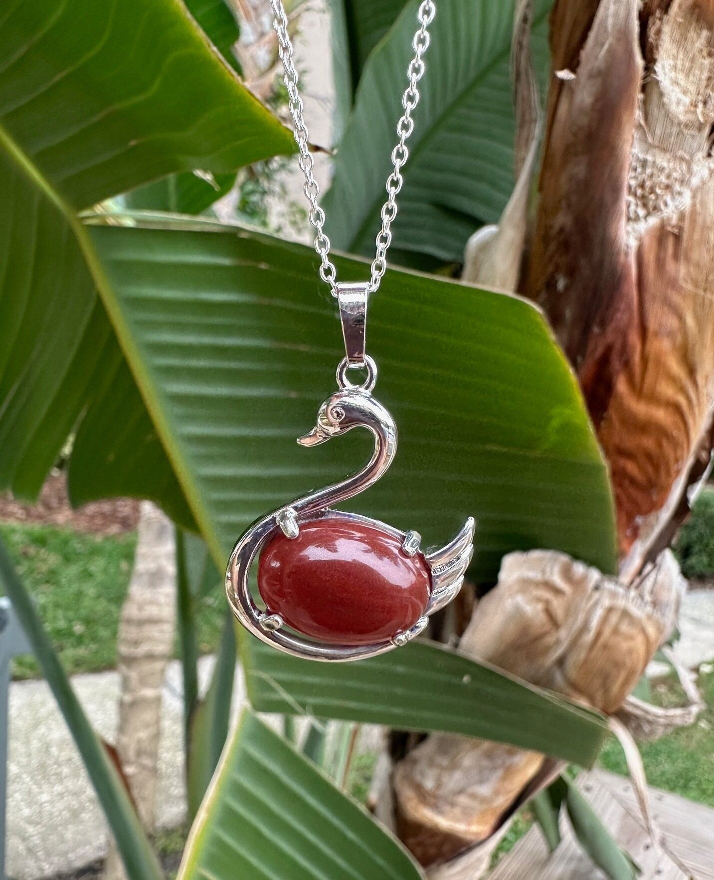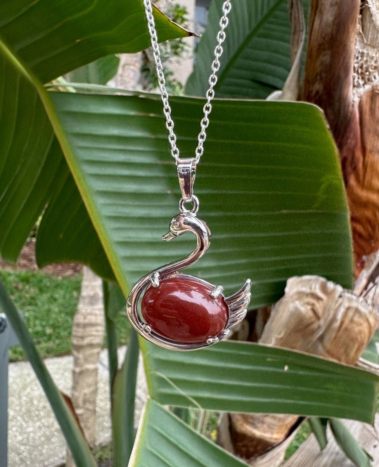 Red Agate Swan Pendant Necklace