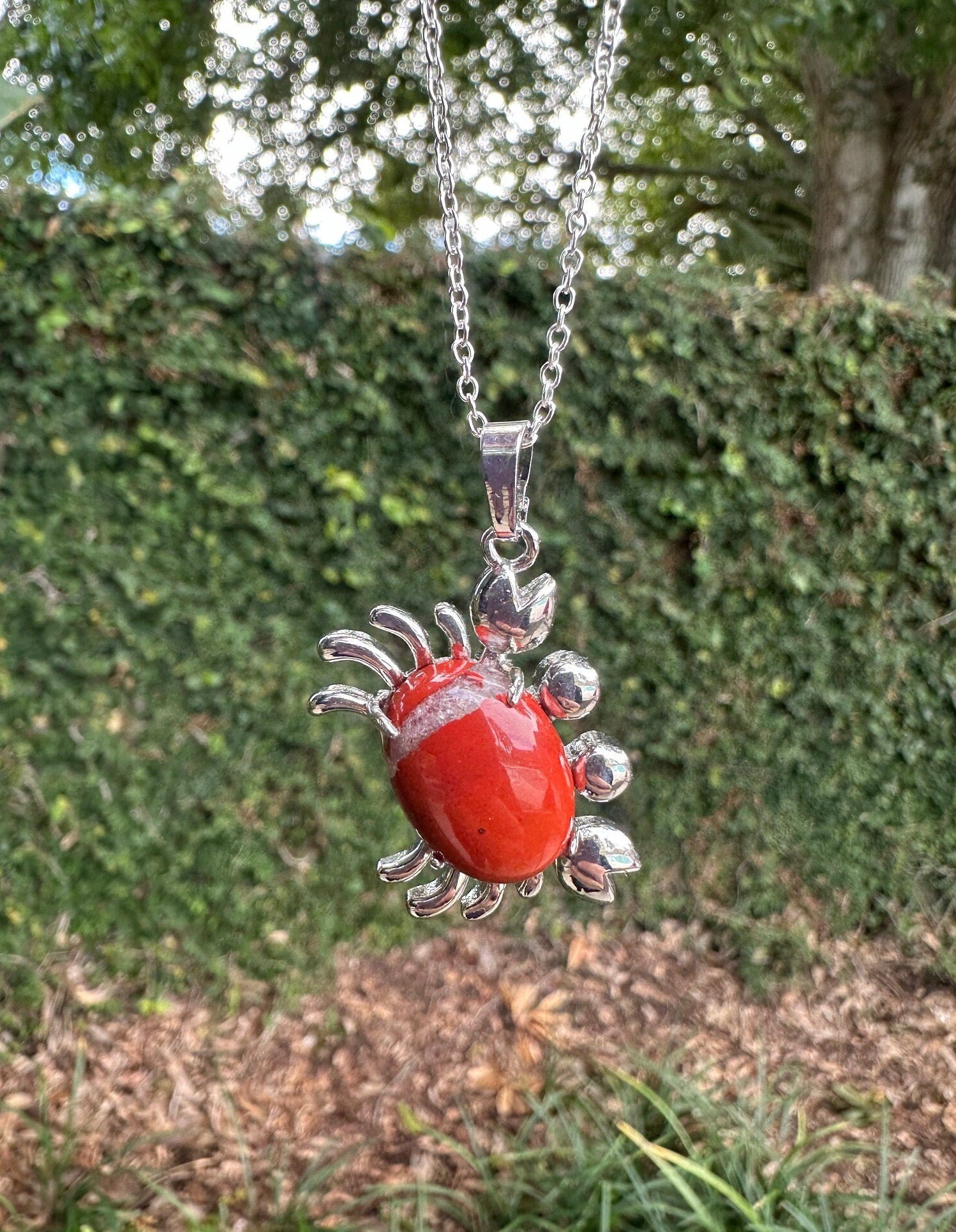 Red Jasper Crab Pendant Necklace