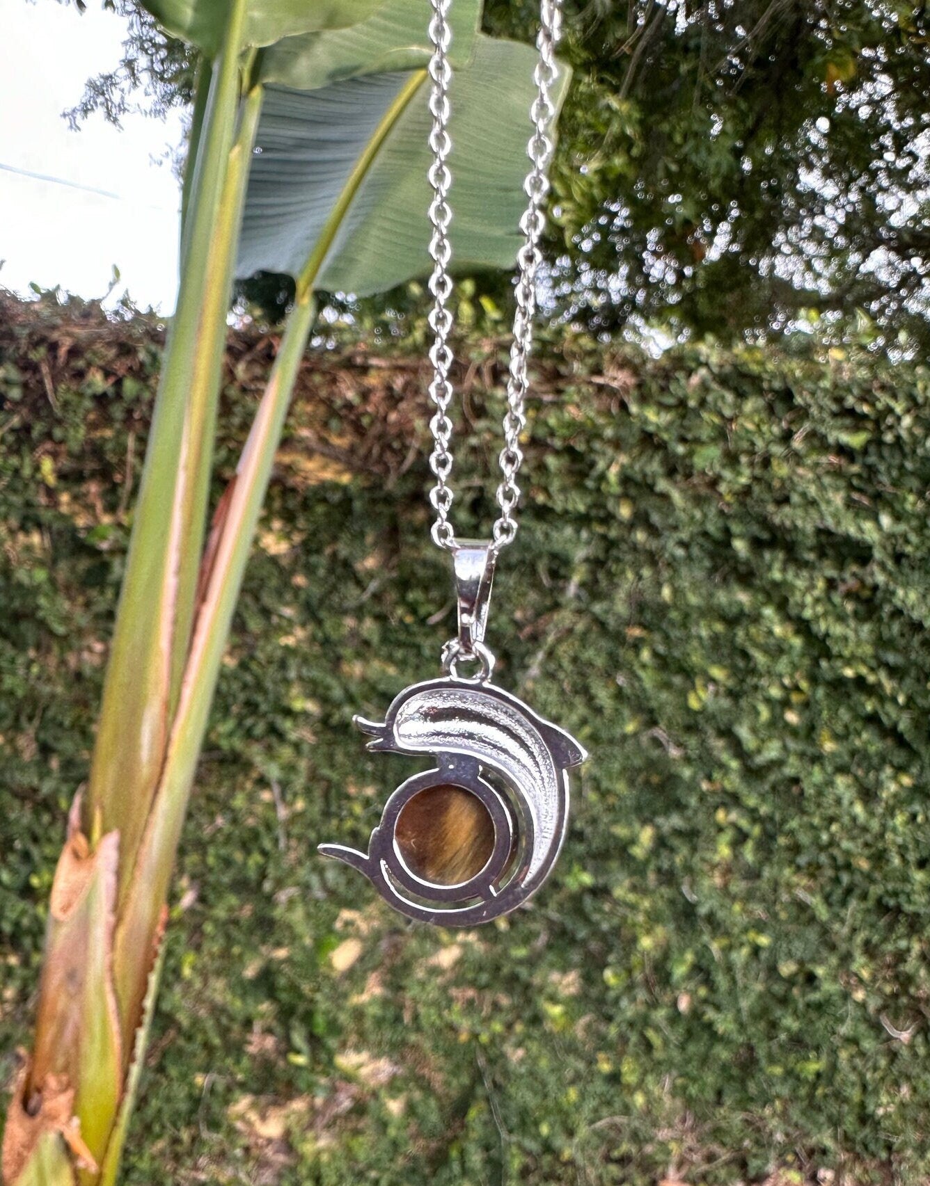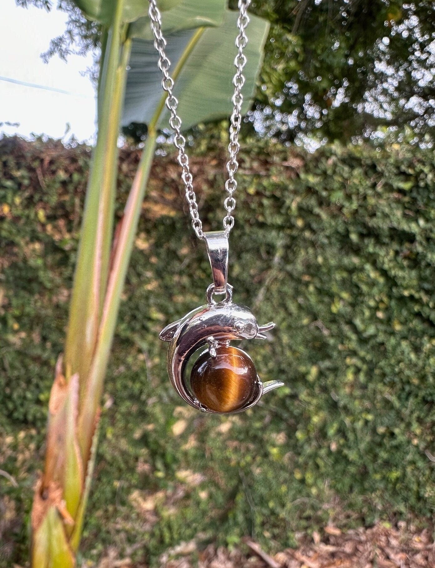 Tiger Eye Dolphin Pendant Necklace