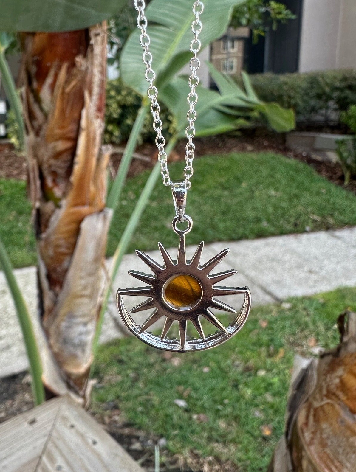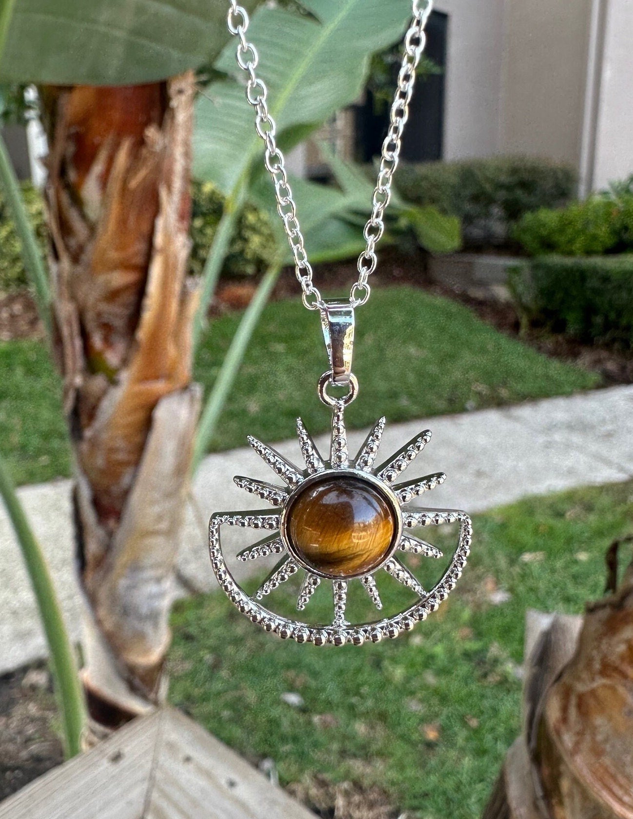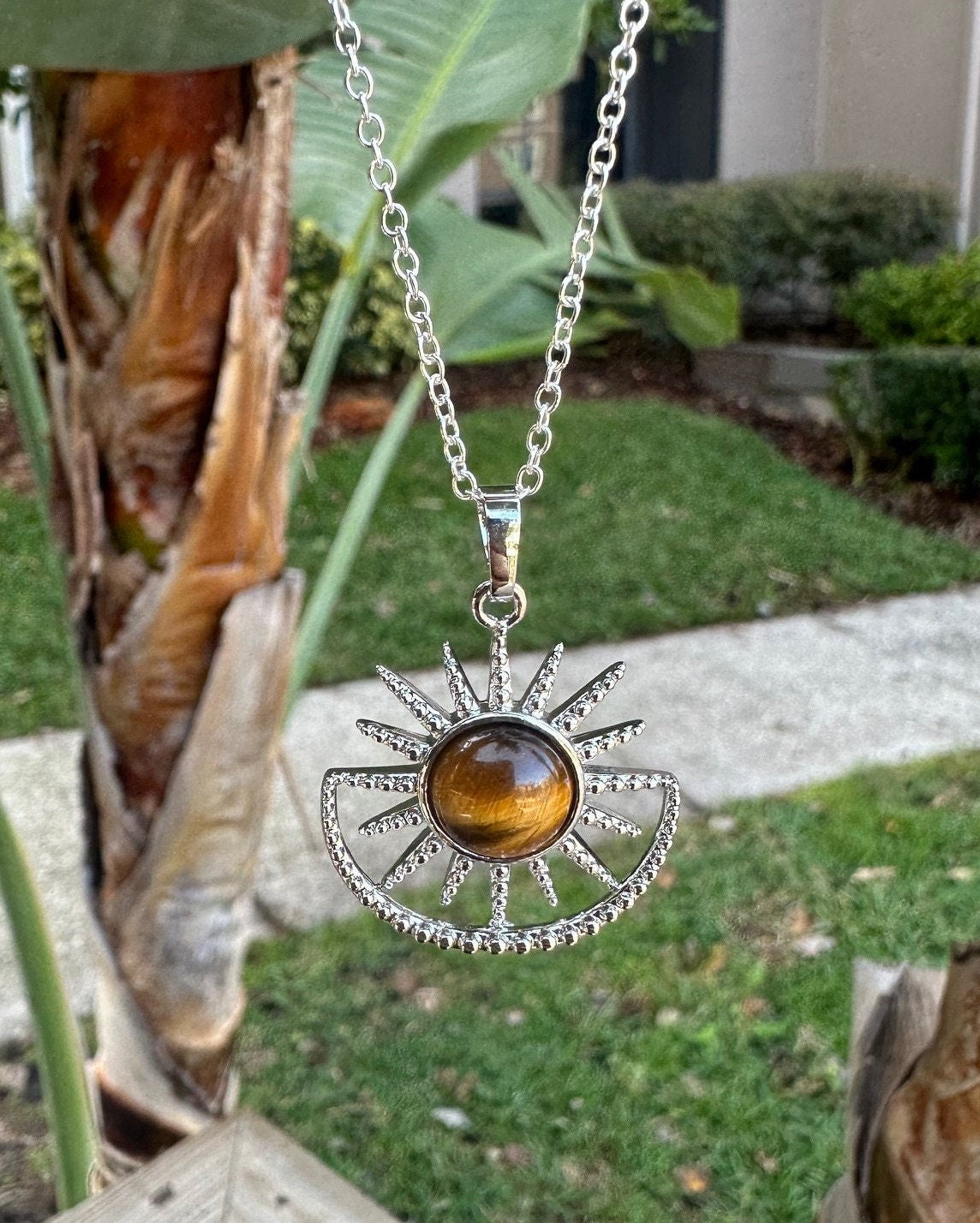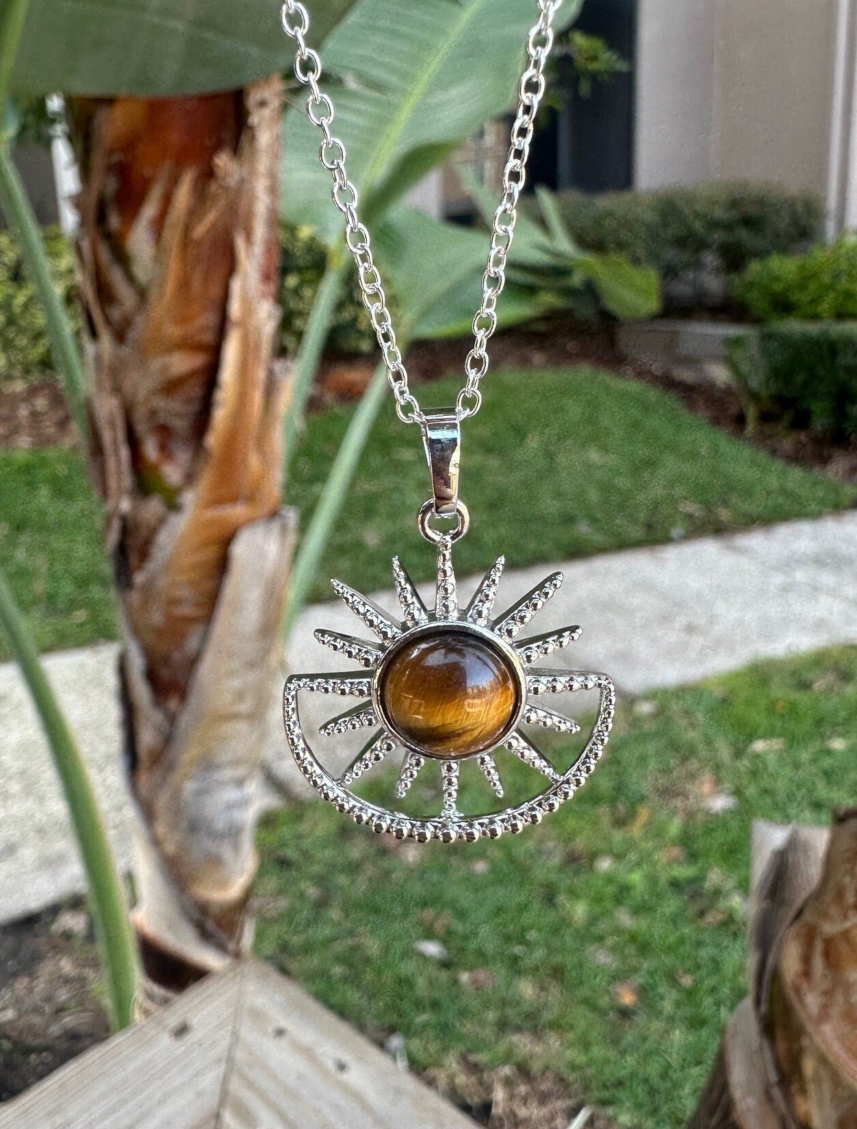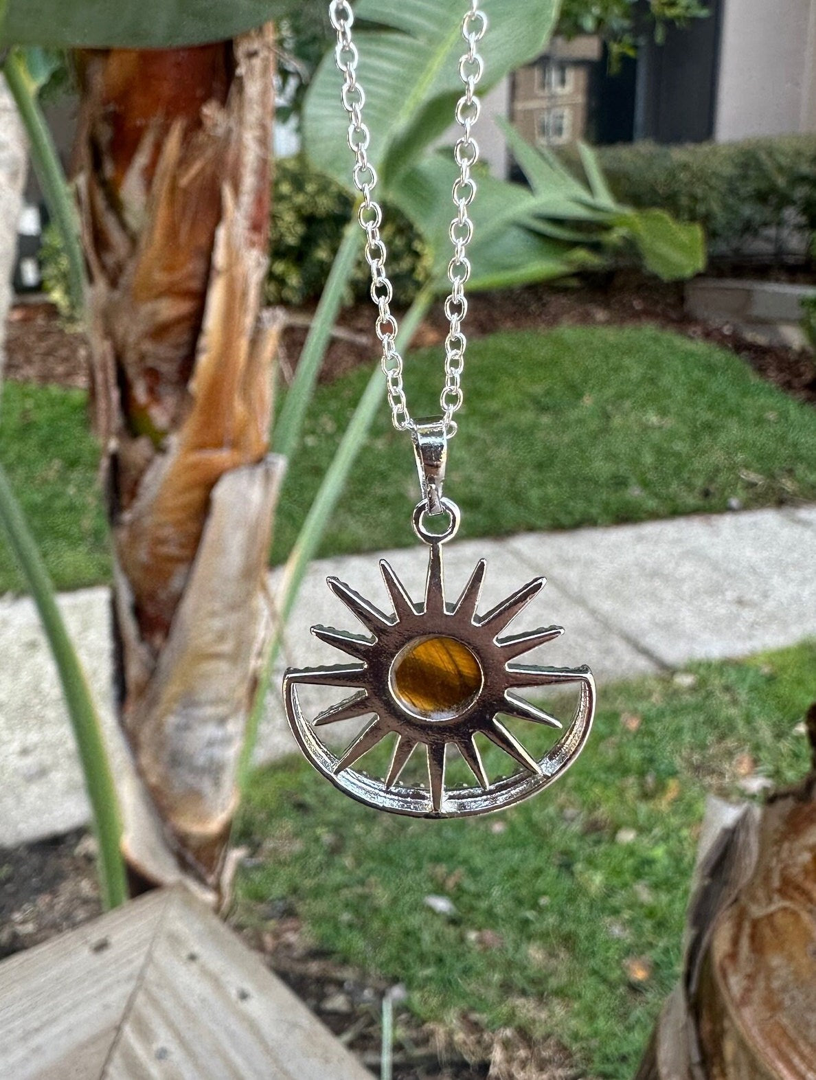 Tiger Eye Sun Moon Pendant Necklace