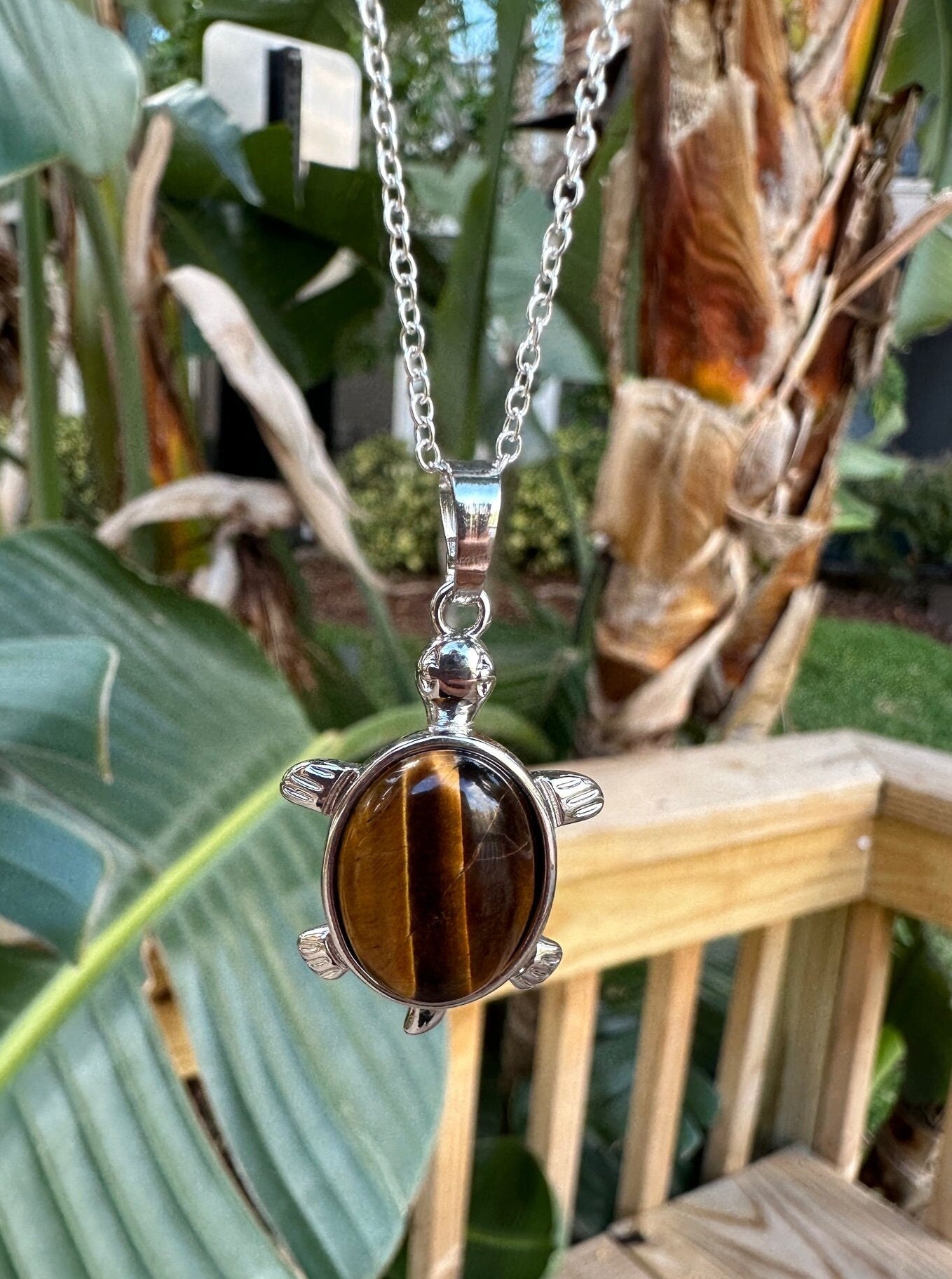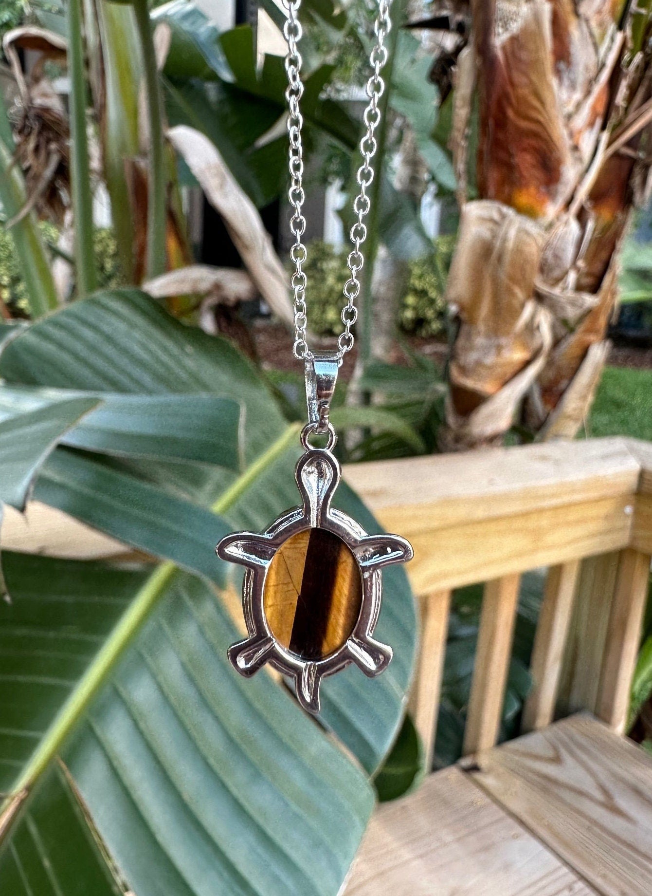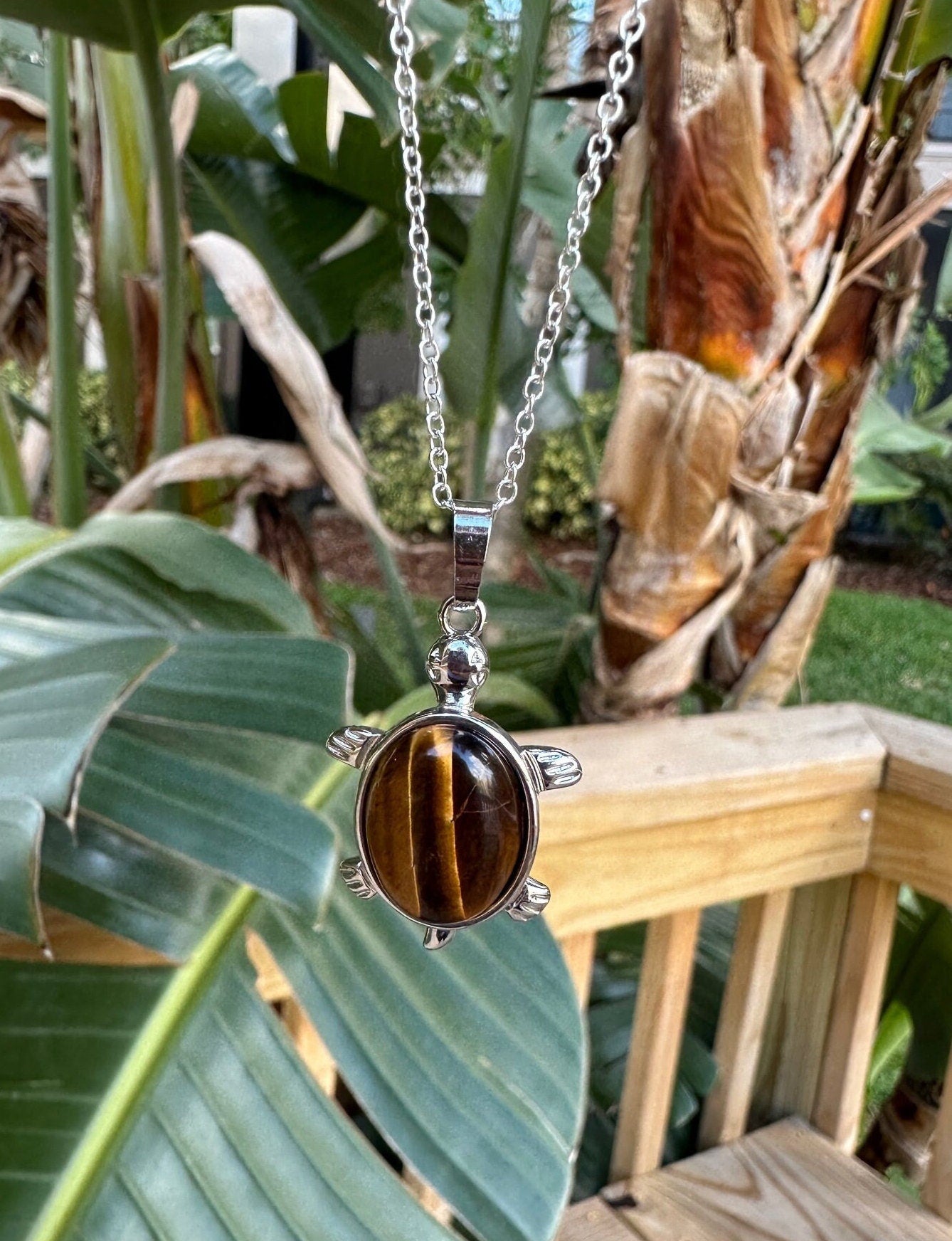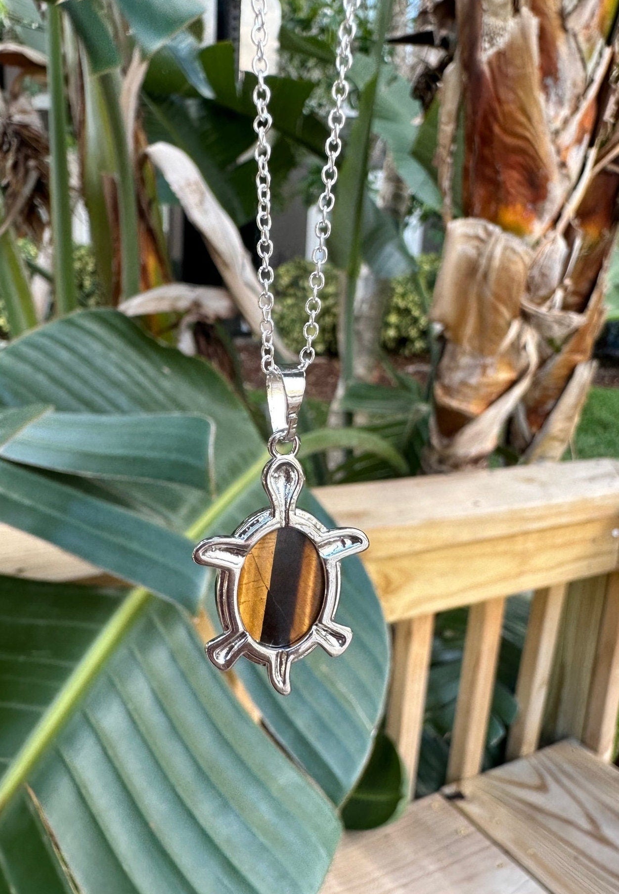 Tiger Eye Turtle Pendant Necklace