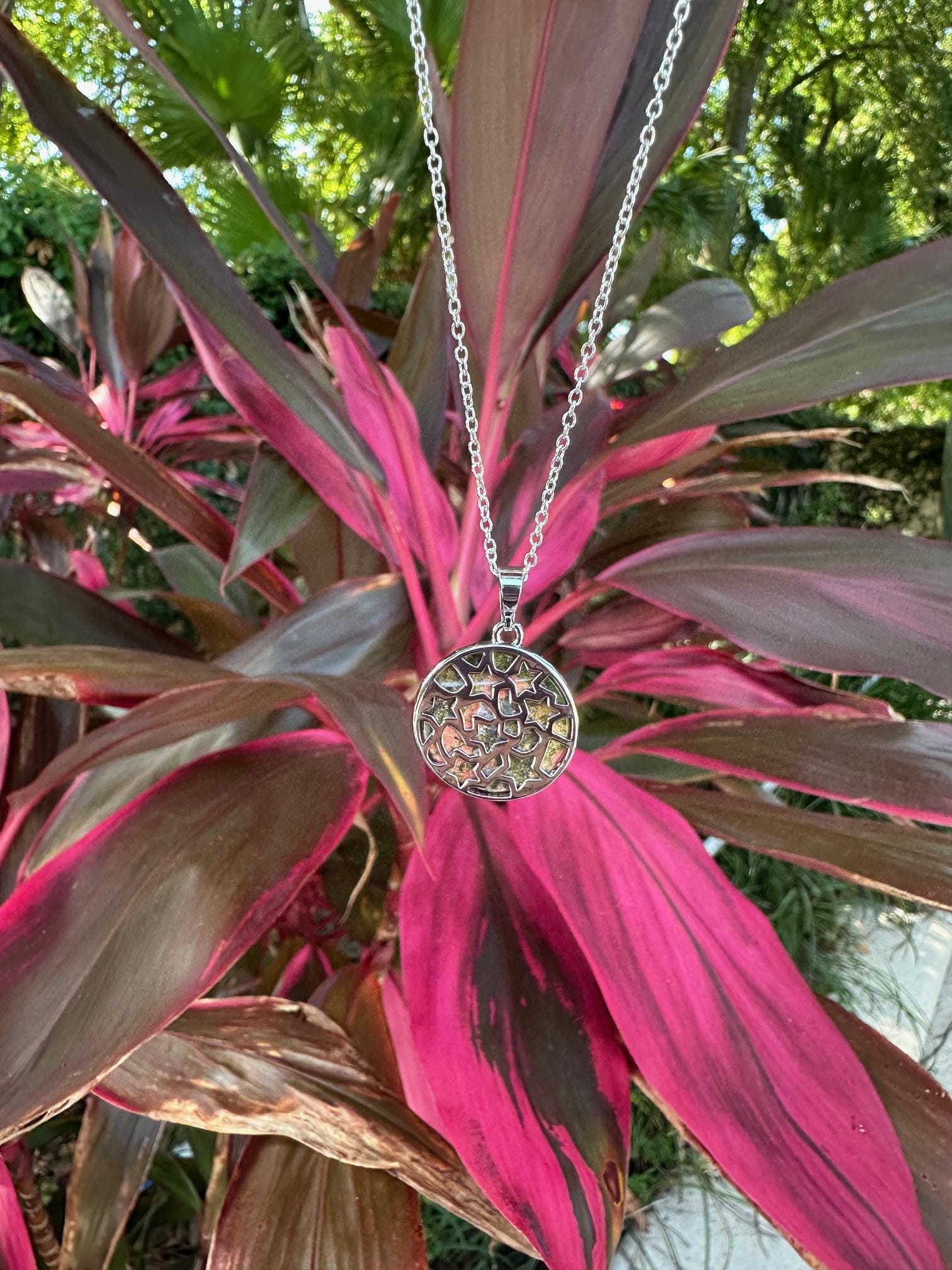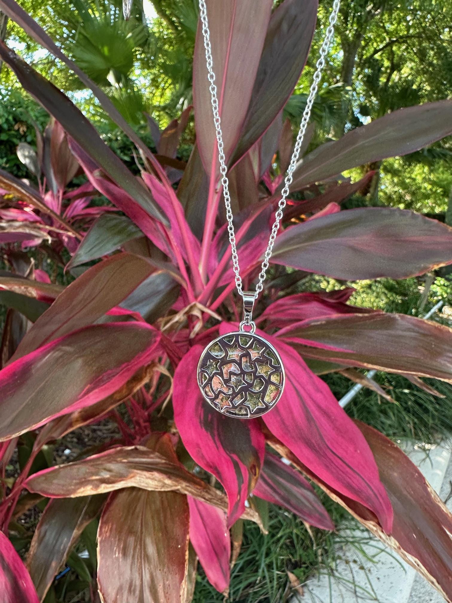 Metal pieces and chain are made of stainless steel. Chain is silver plated.