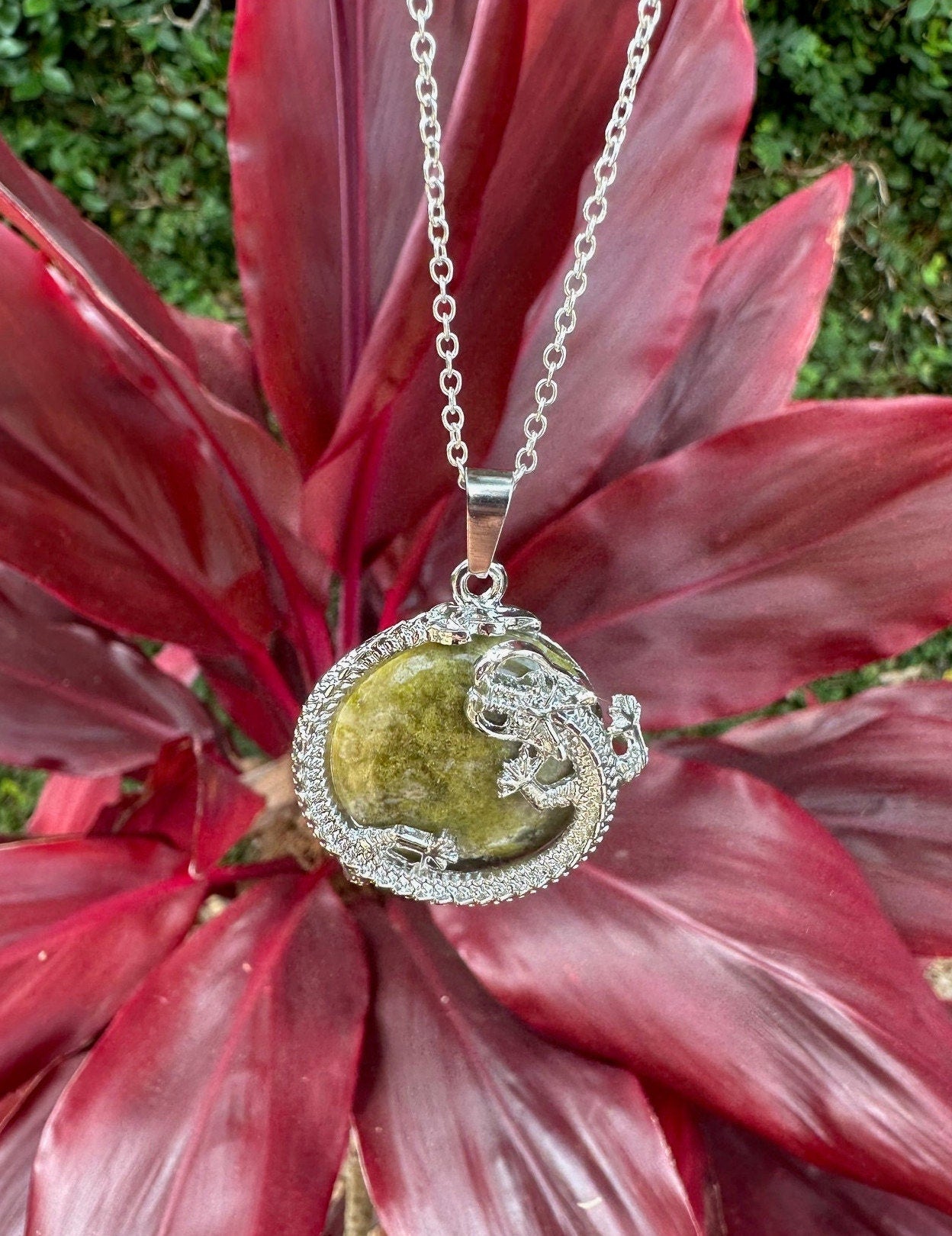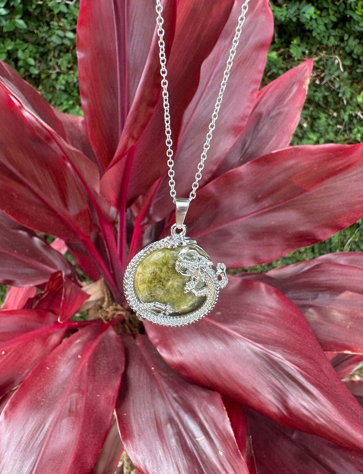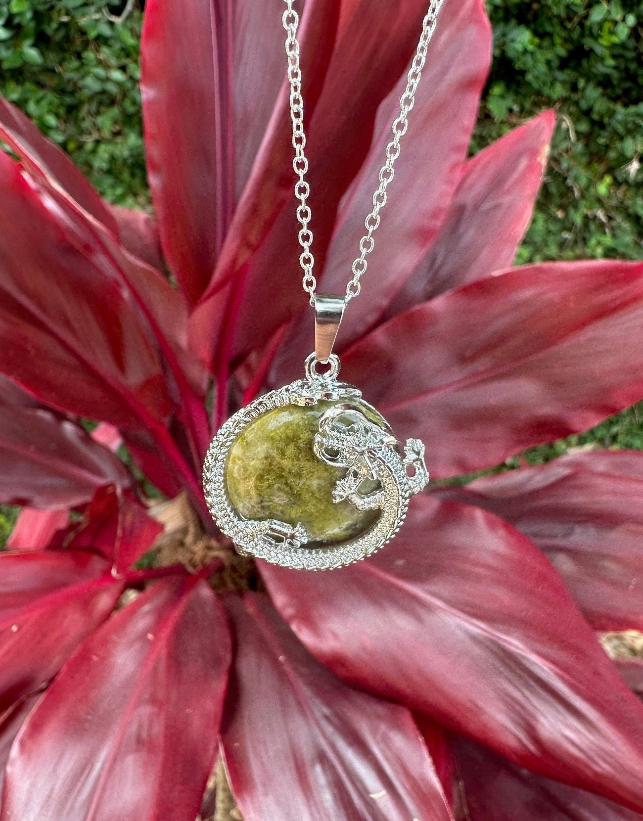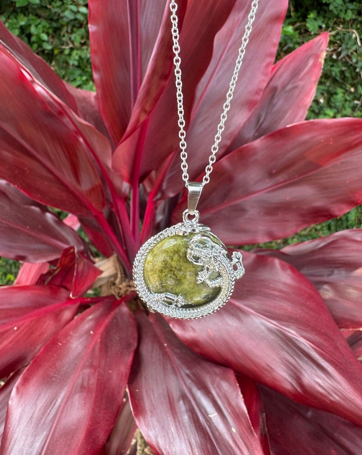 Unakite Dragon Flat Necklace