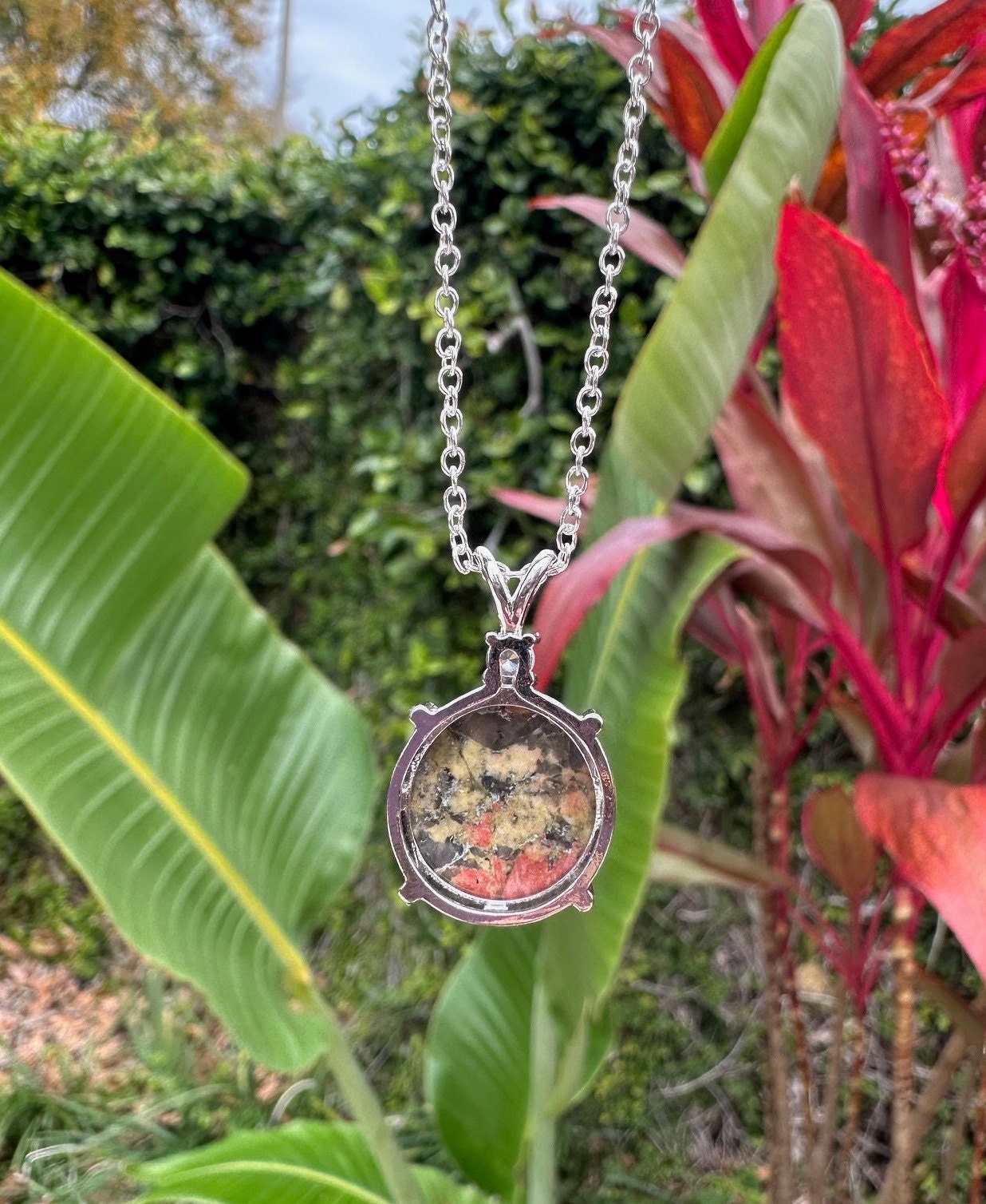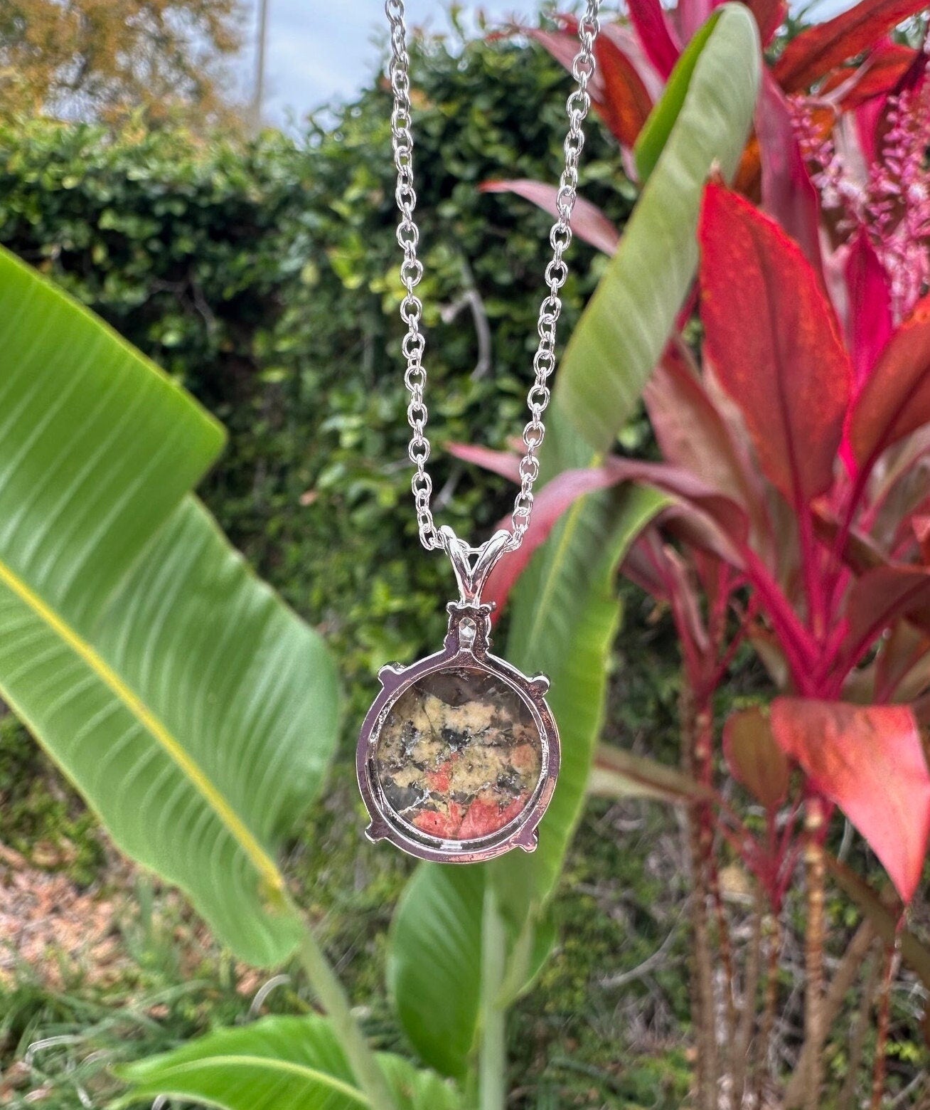 Metal pieces and chain are made of stainless steel. Chain is silver plated.